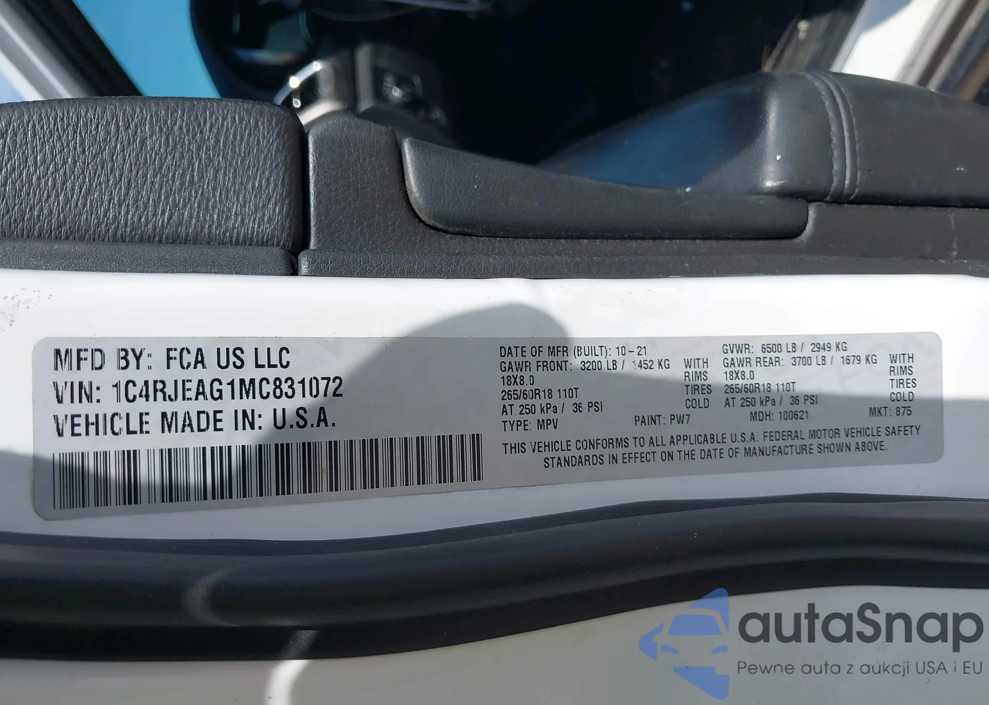 LOT: 43398027 VIN: 1J4FY19SXVP449790