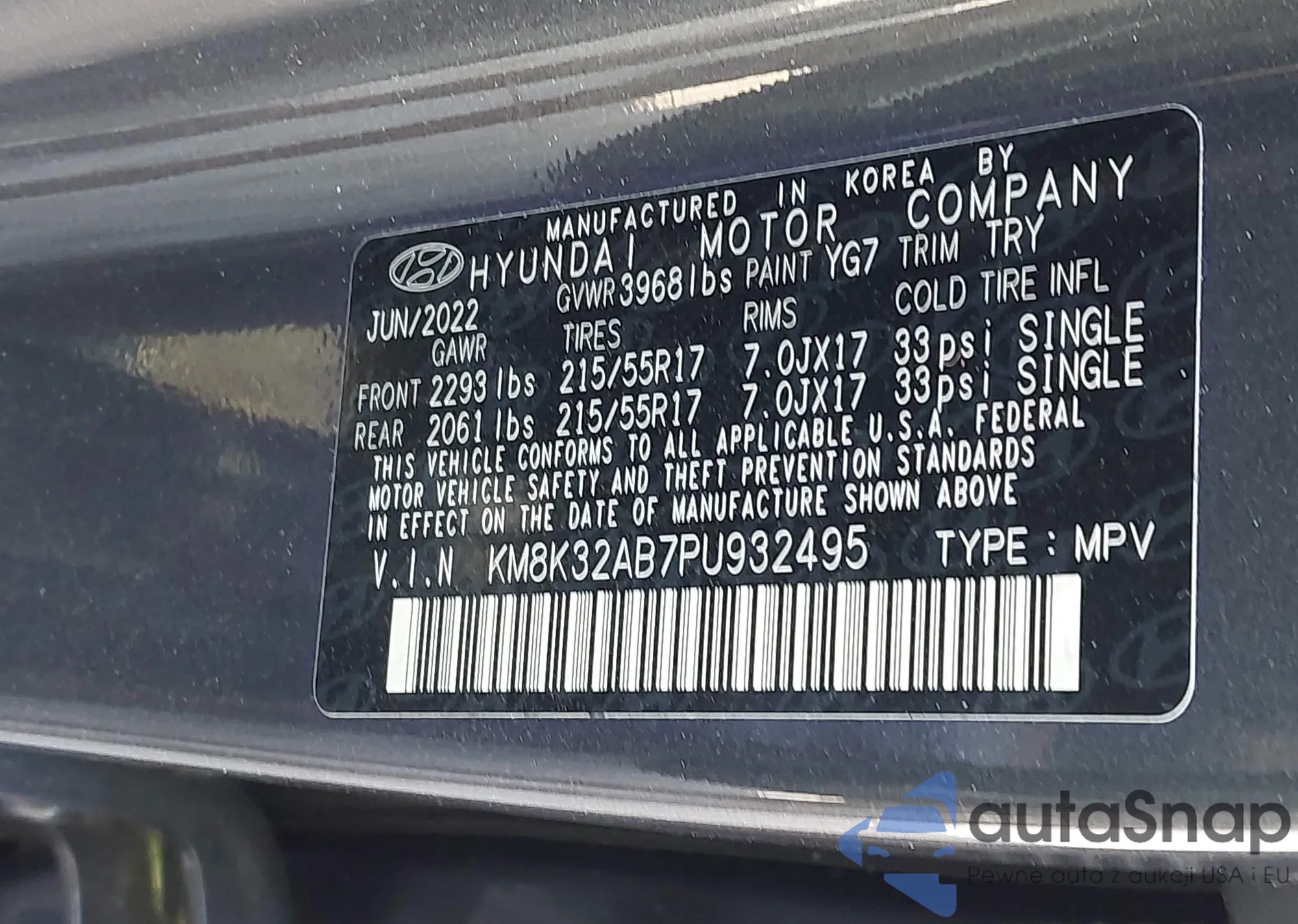• VIN KM8K32AB7PU932495