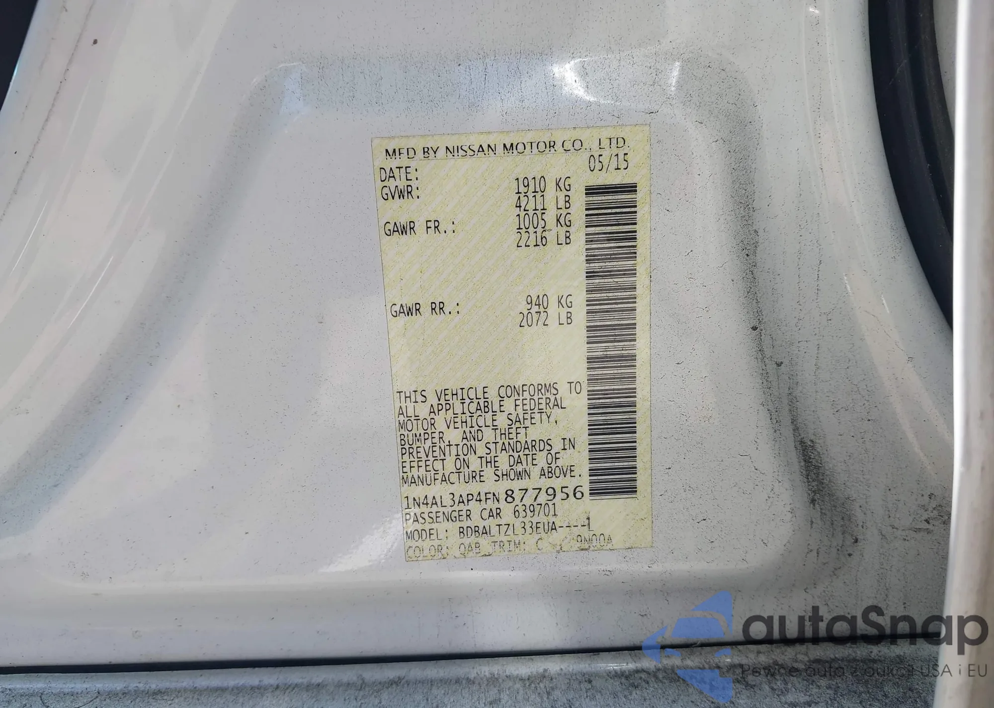 LOT: 43234656 VIN: 1N4AL3AP4FN877956