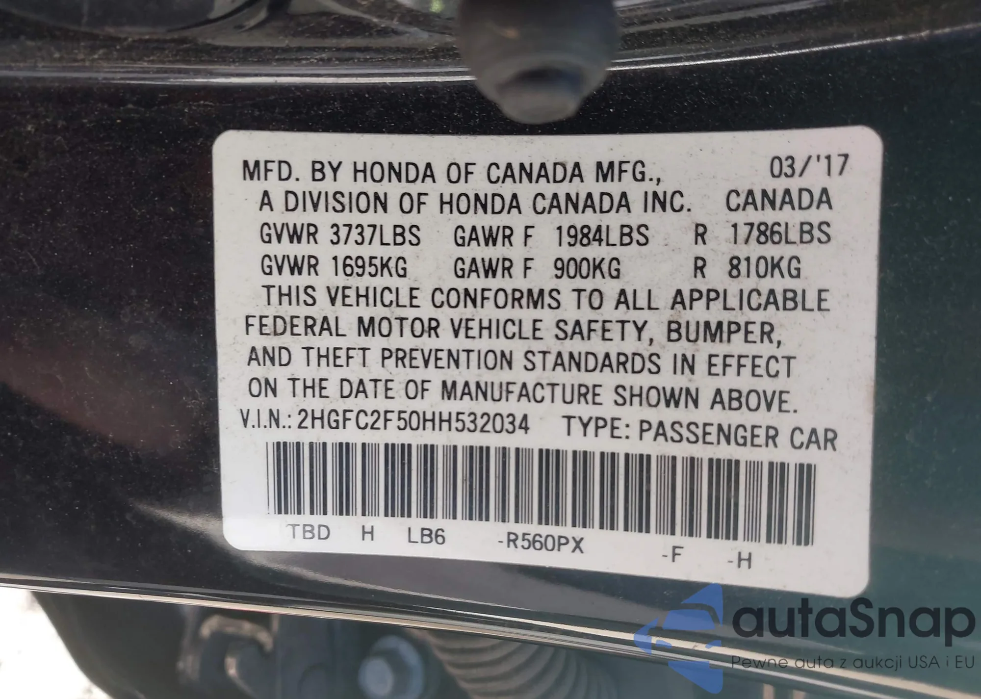 • VIN 2HGFC2F50HH532034