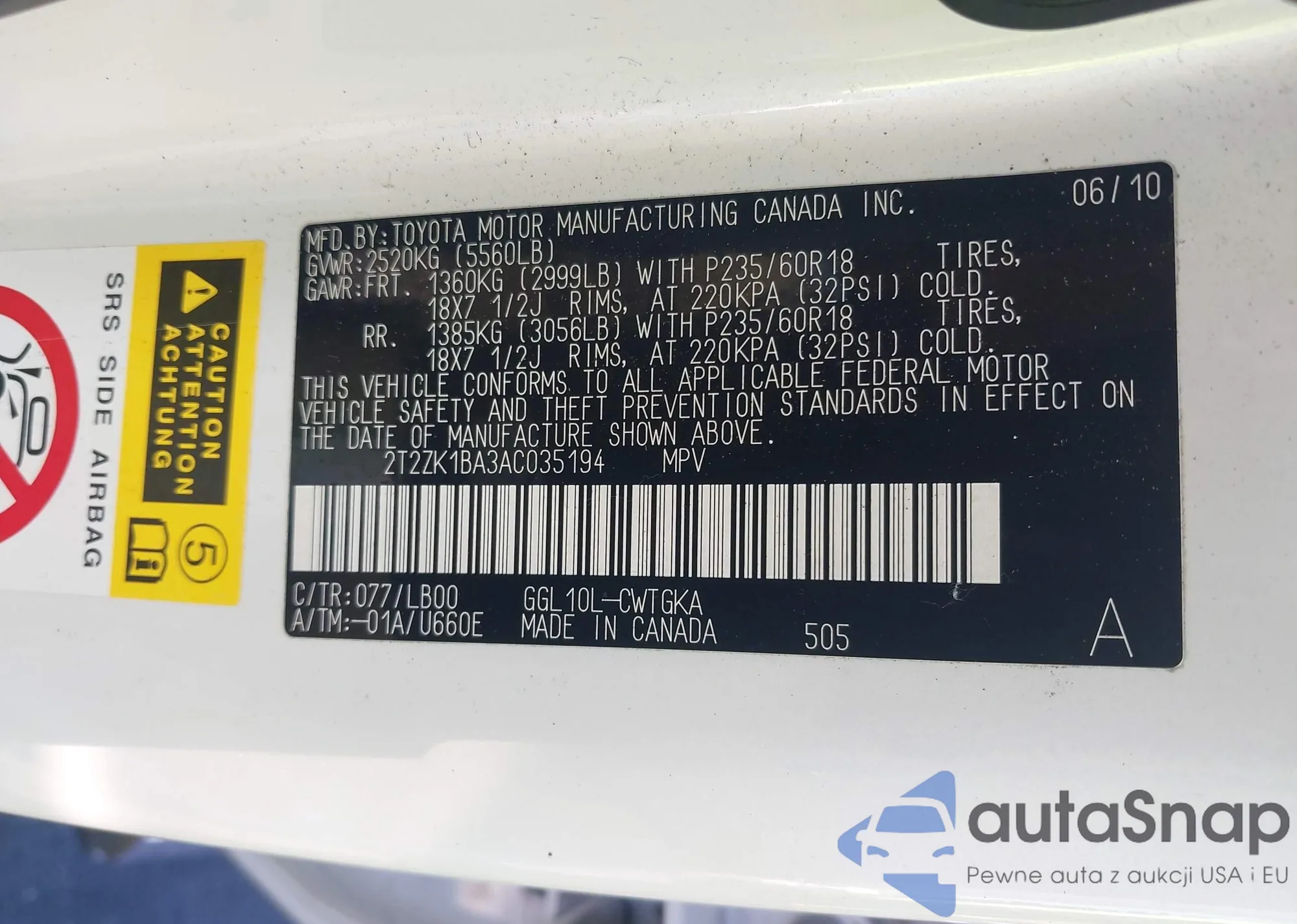 LOT: 43400035 VIN: JTEZU14R668049154