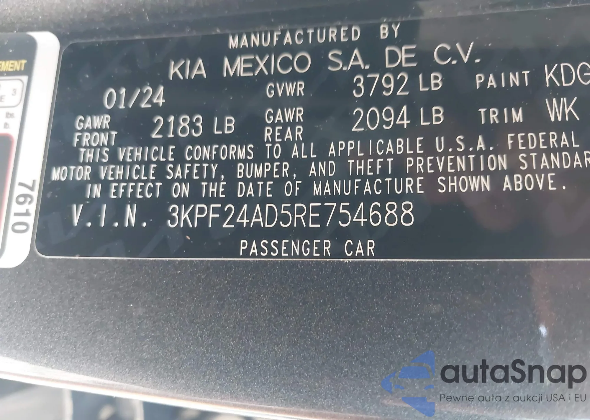 • VIN 3KPF24AD5RE754688
