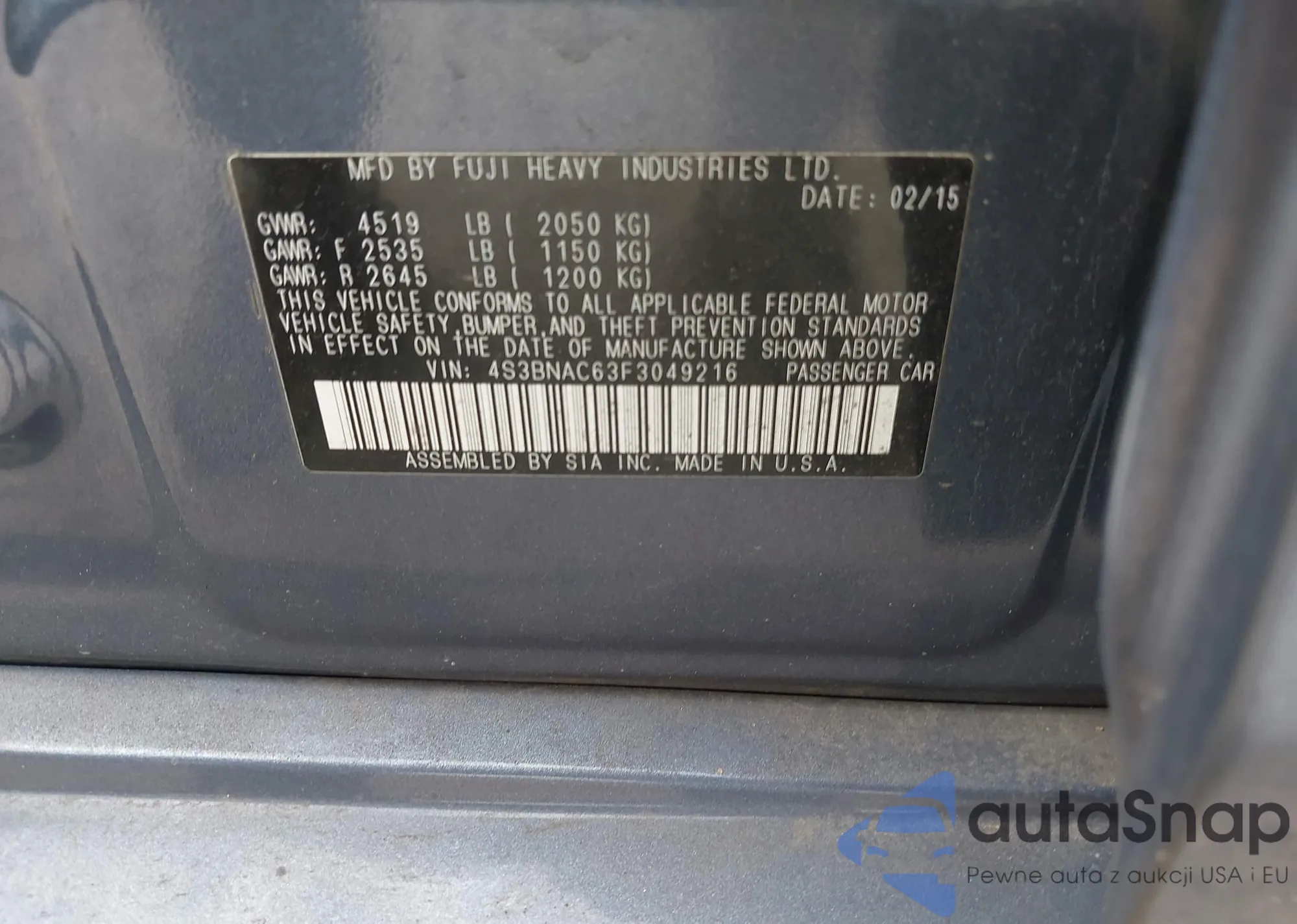 • VIN 4S3BNAC63F3049216
