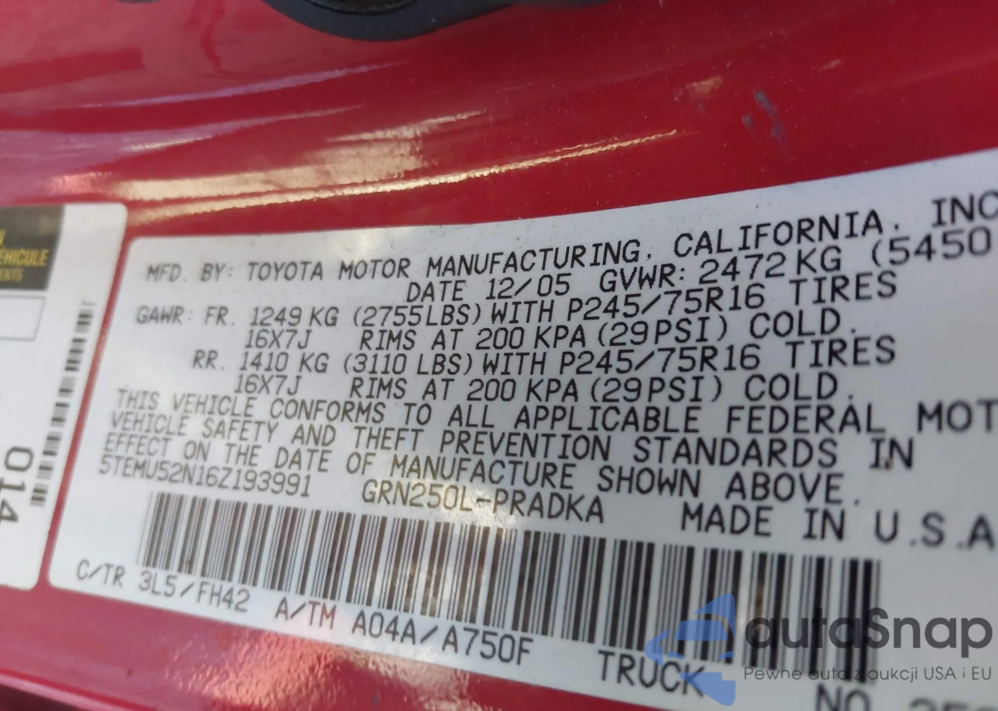 • VIN 4T1BK1EB0DU038258