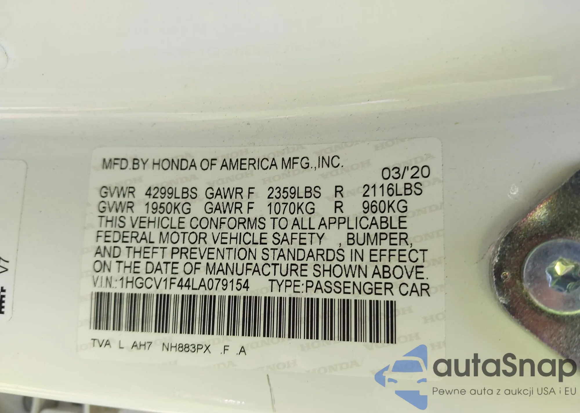 LOT: 43241972 VIN: 1HGCV1F44LA079154