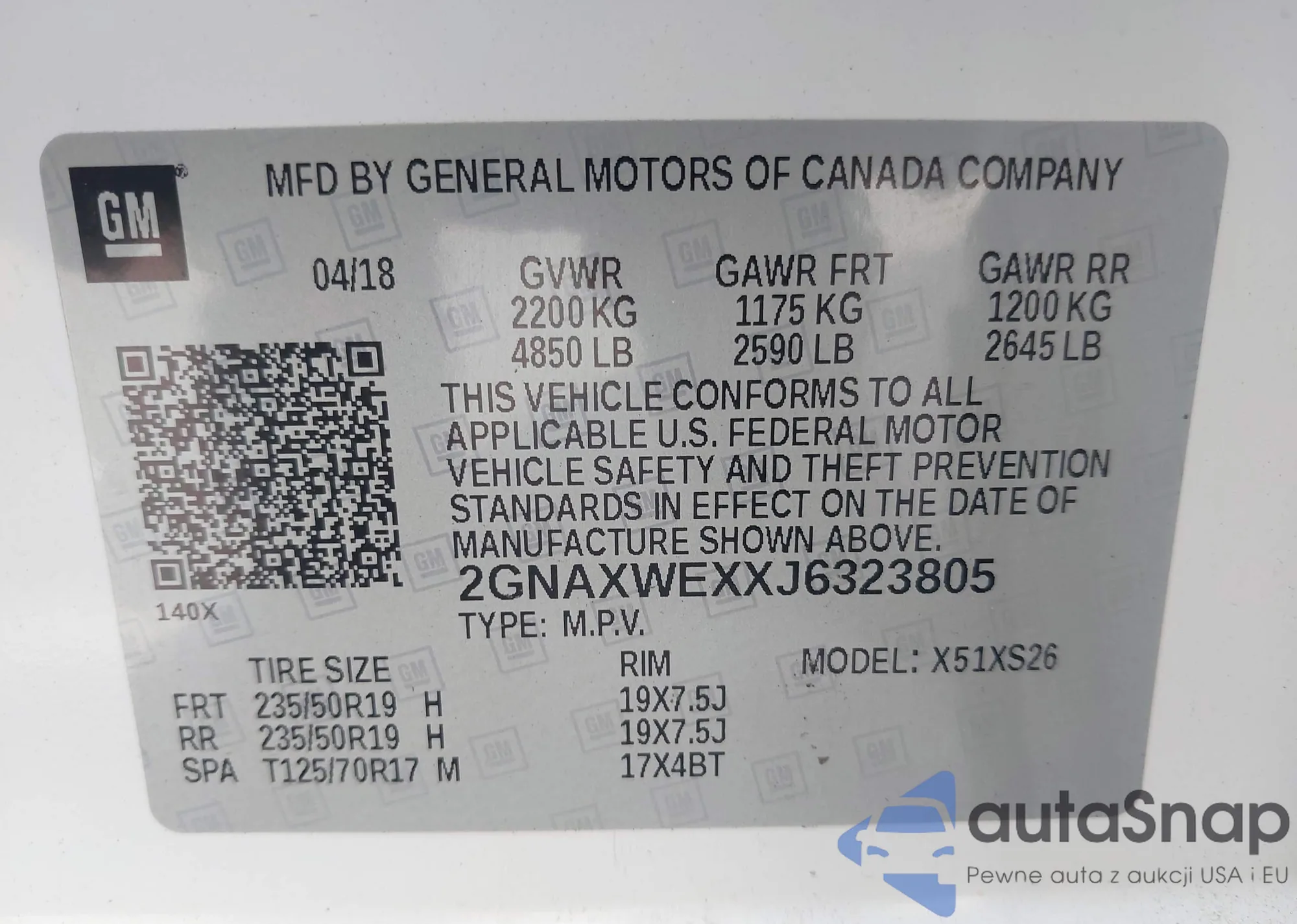 LOT: 43121688 VIN: 5NPD84LF6JH368544
