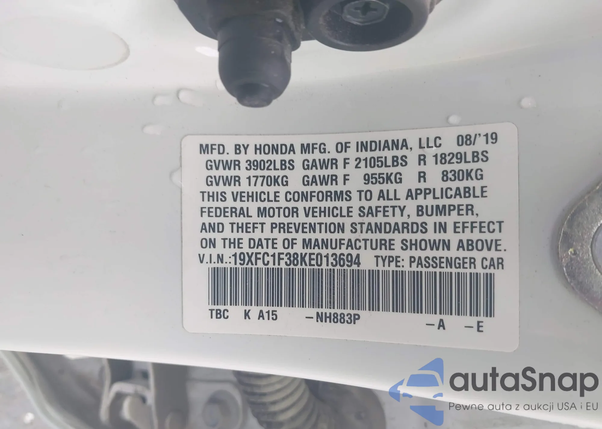 • VIN 19XFC1F38KE013694