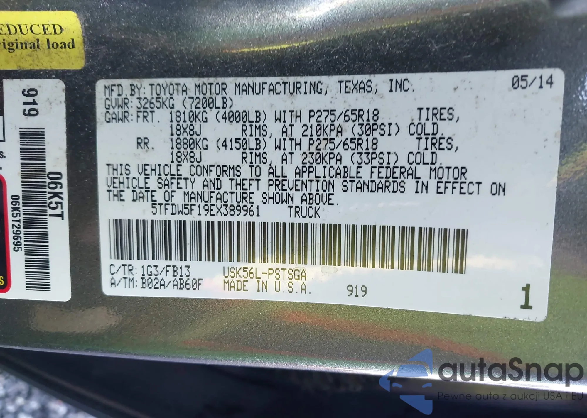 LOT: 43579029 VIN: 5TFDW5F19EX389961