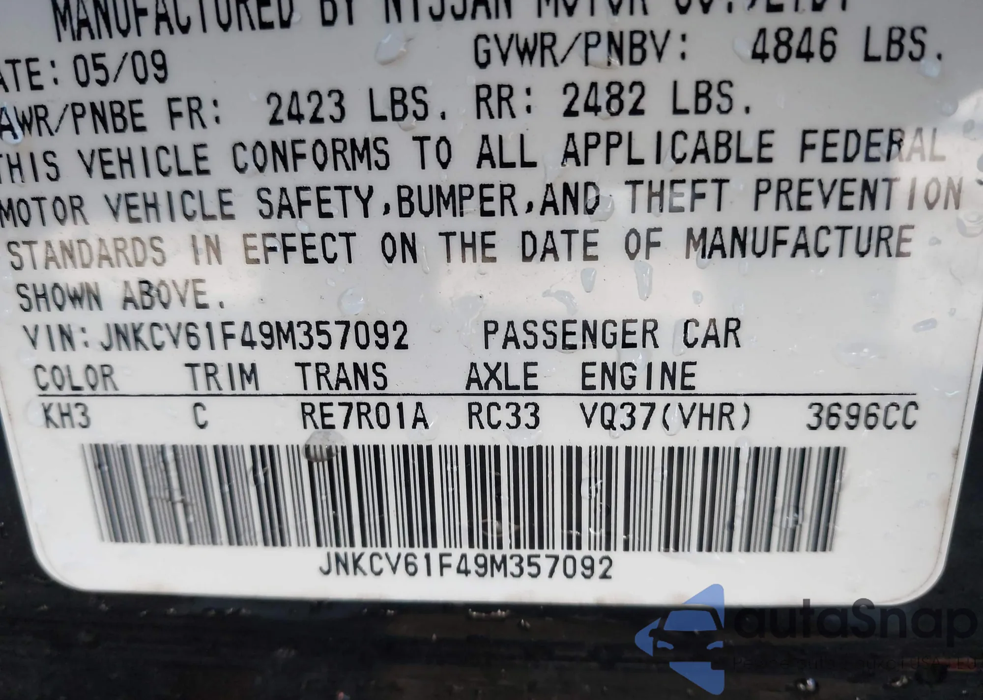 • VIN JNKCV61F49M357092