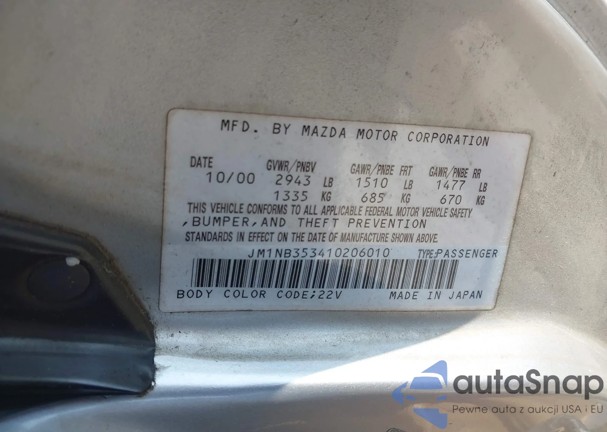 LOT: 43081758 VIN: JM1NB353410206010