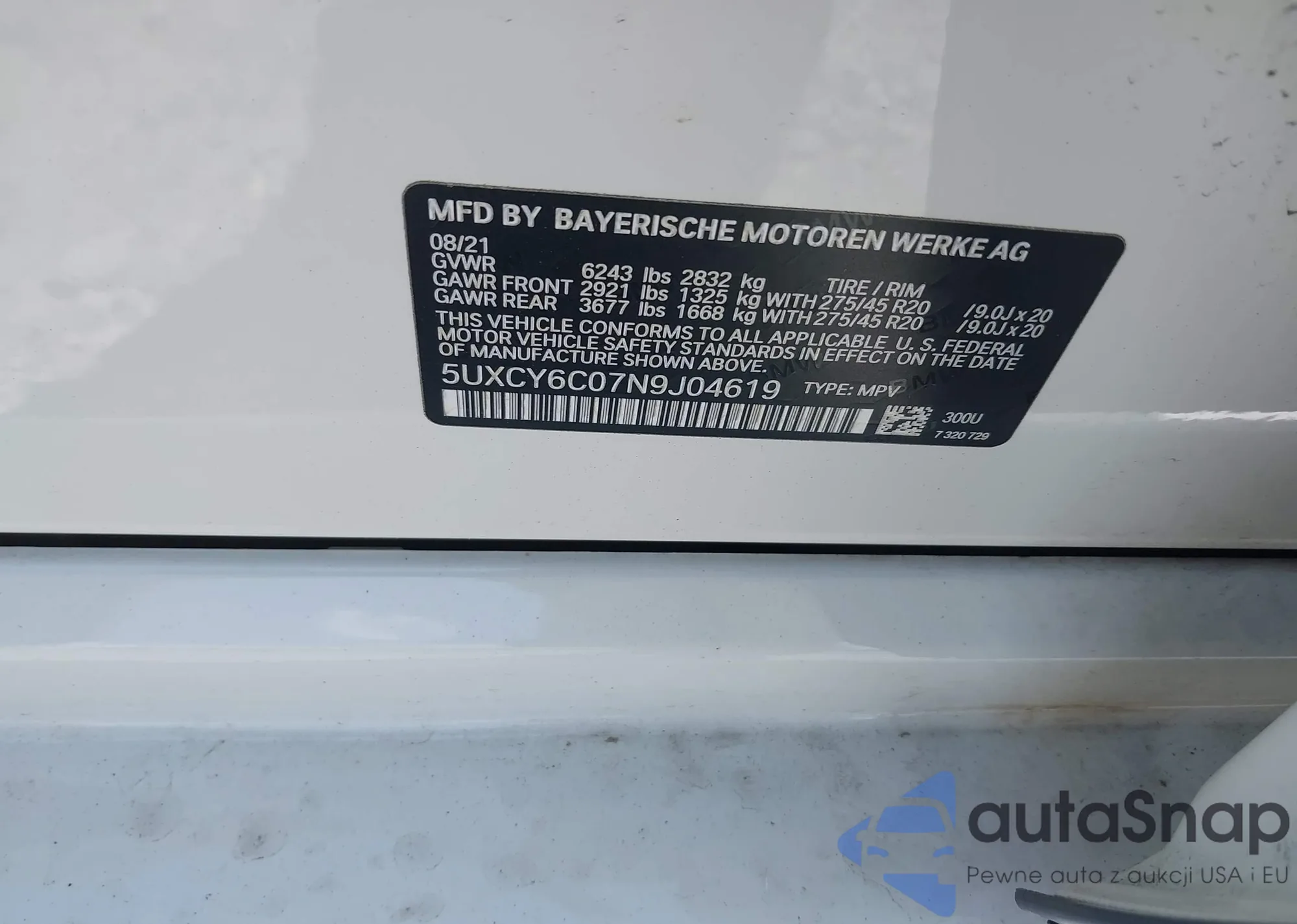 • VIN 5UXCY6C07N9J04619
