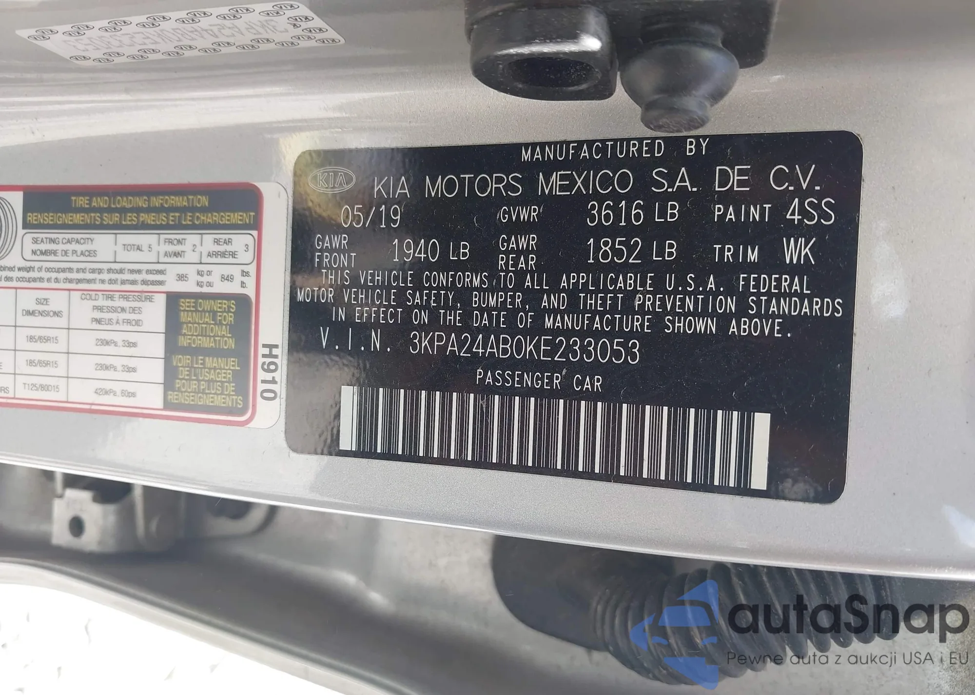 • VIN 3KPA24AB0KE233053