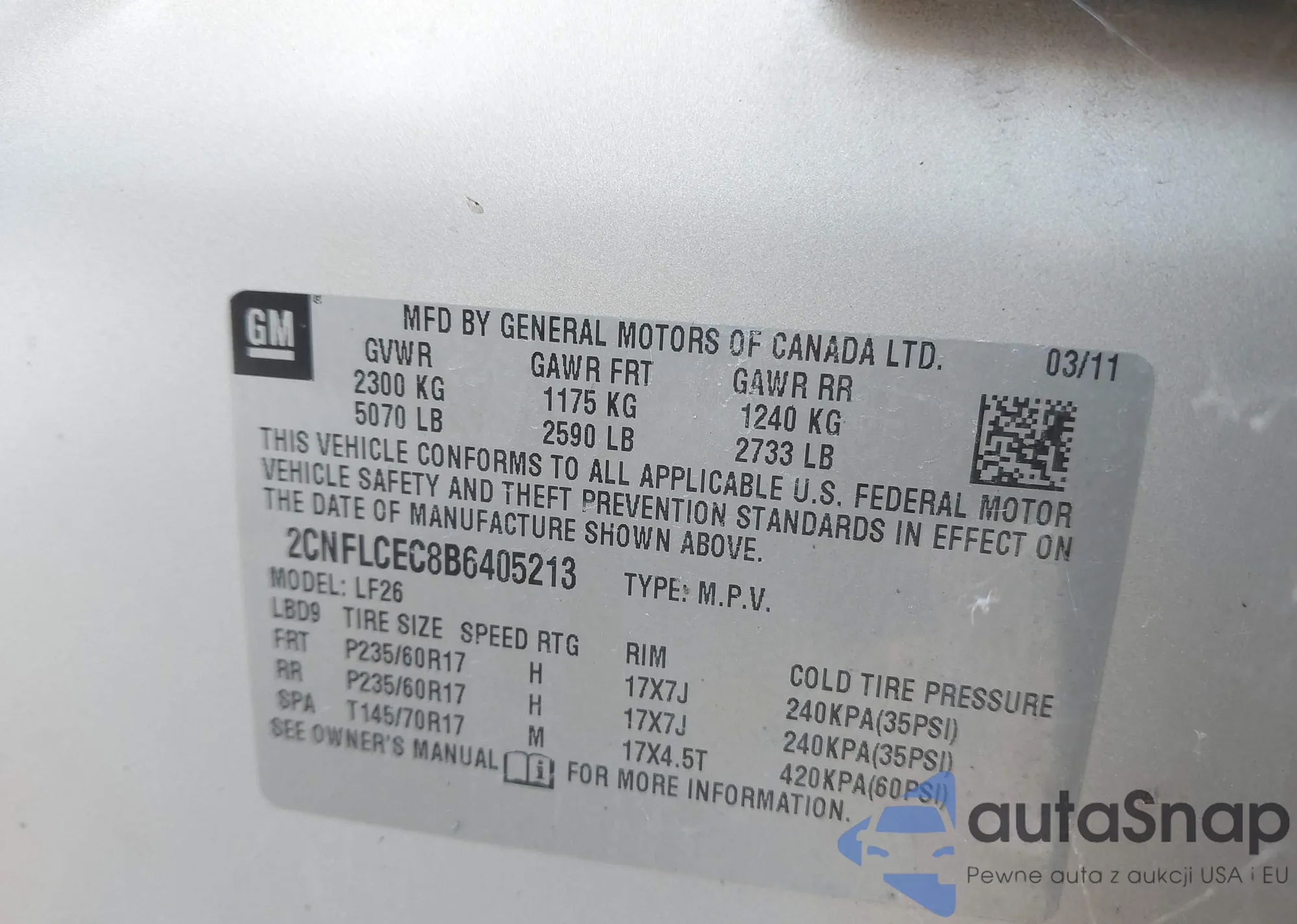 • VIN 2CNFLCEC8B6405213