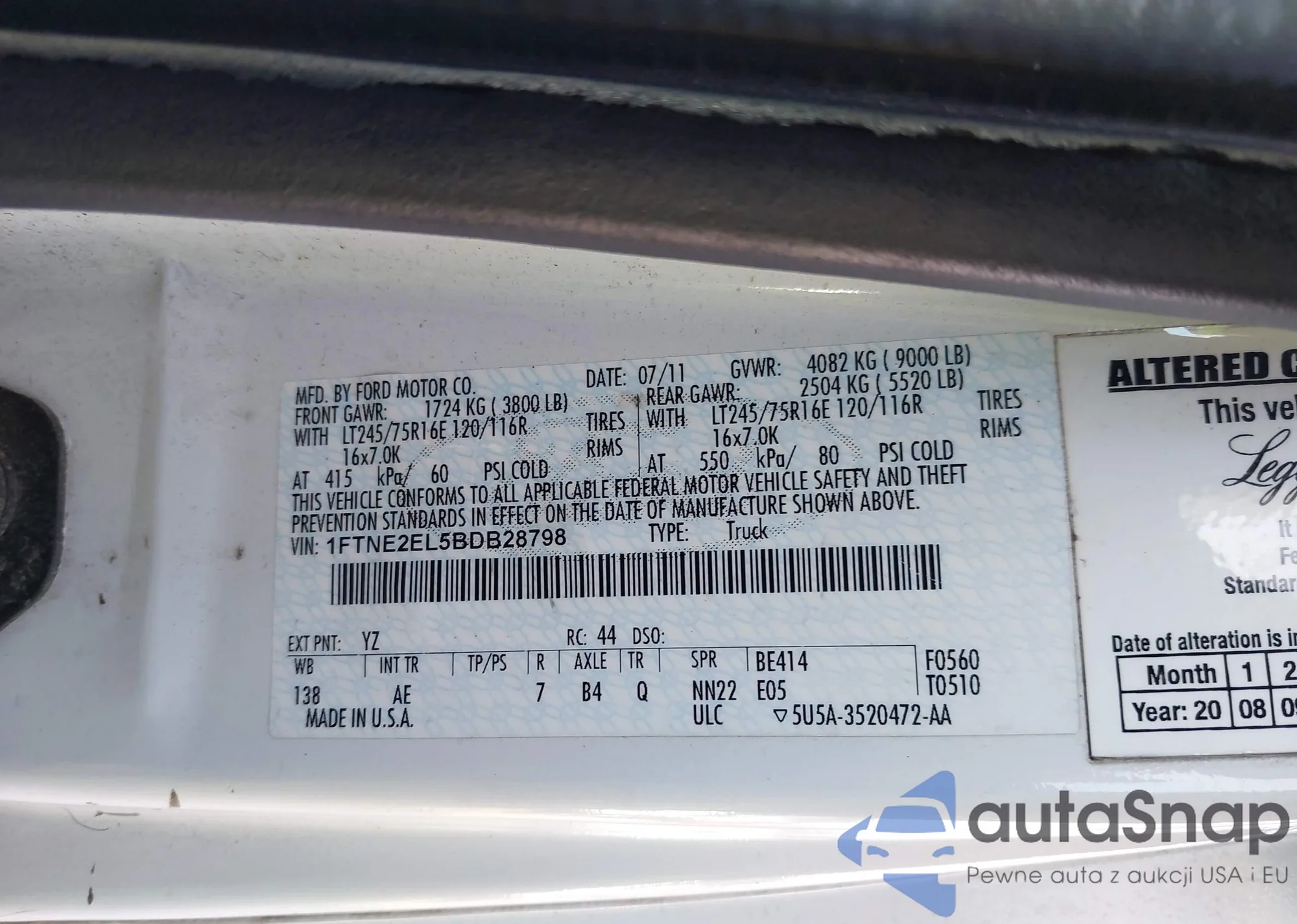 • VIN 1FTNE2EL5BDB28798