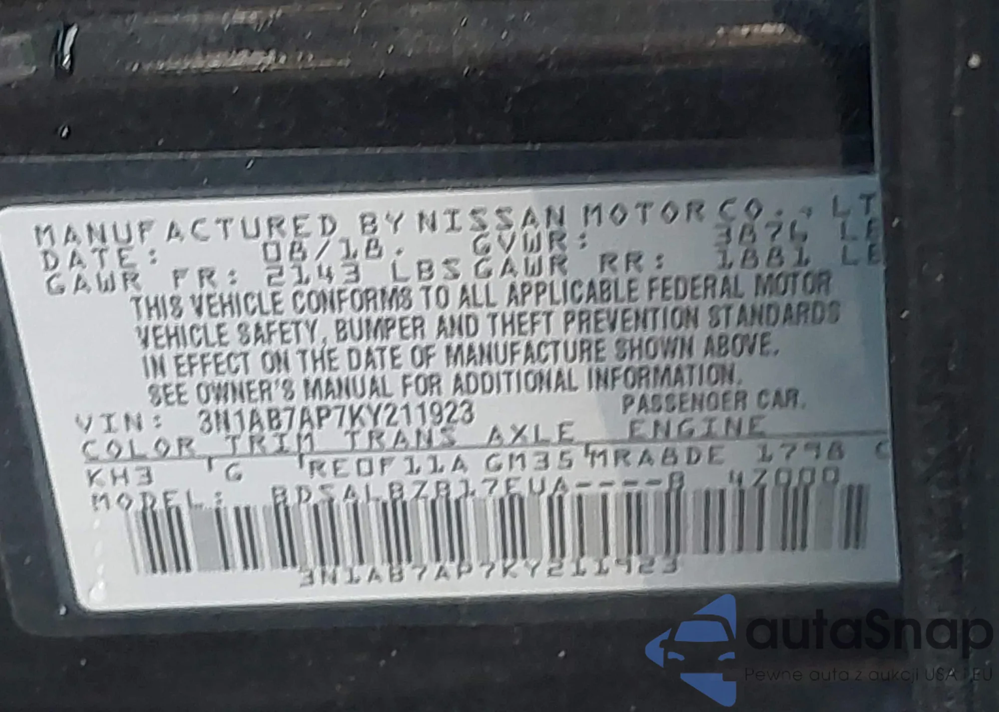 • VIN 5N1BT3BB4SC781778