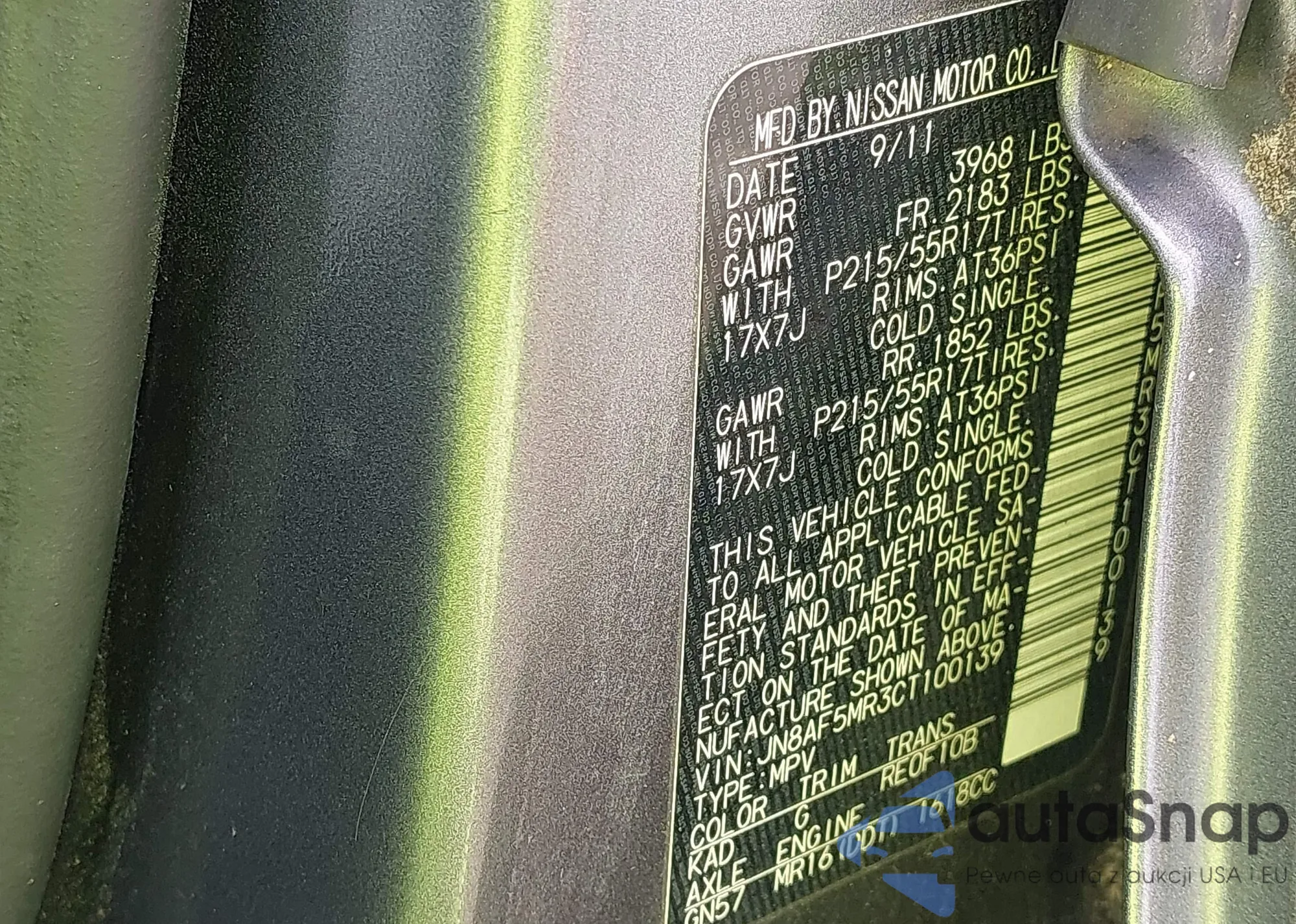 • VIN JN8AS5MT3CW601005