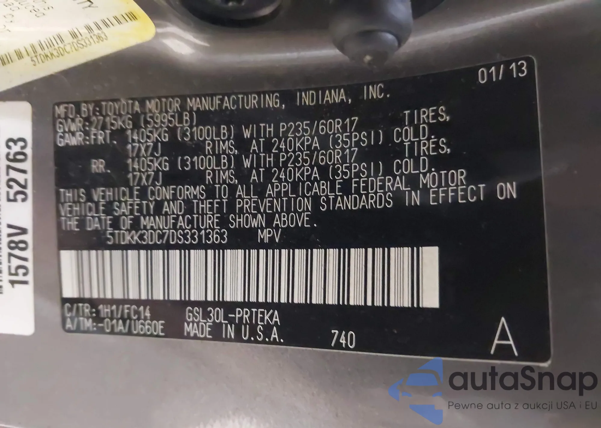 • VIN 5TDKK3DC7DS331363