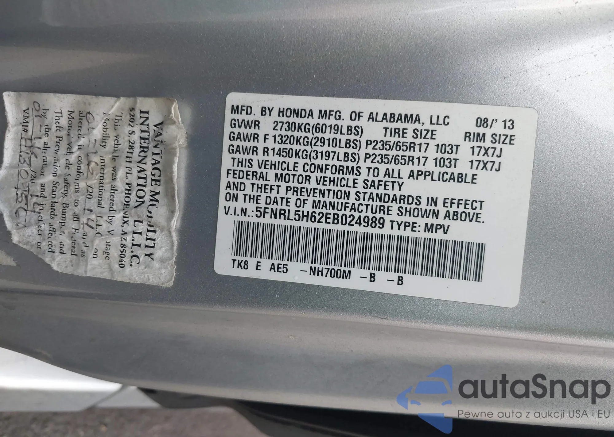 • VIN 5FNRL5H62EB024989