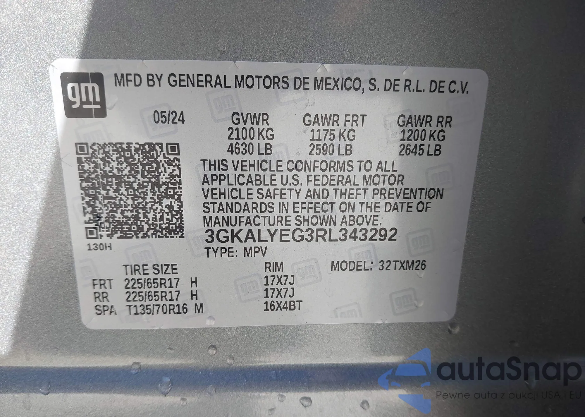 • VIN 3GKALYEG3RL343292