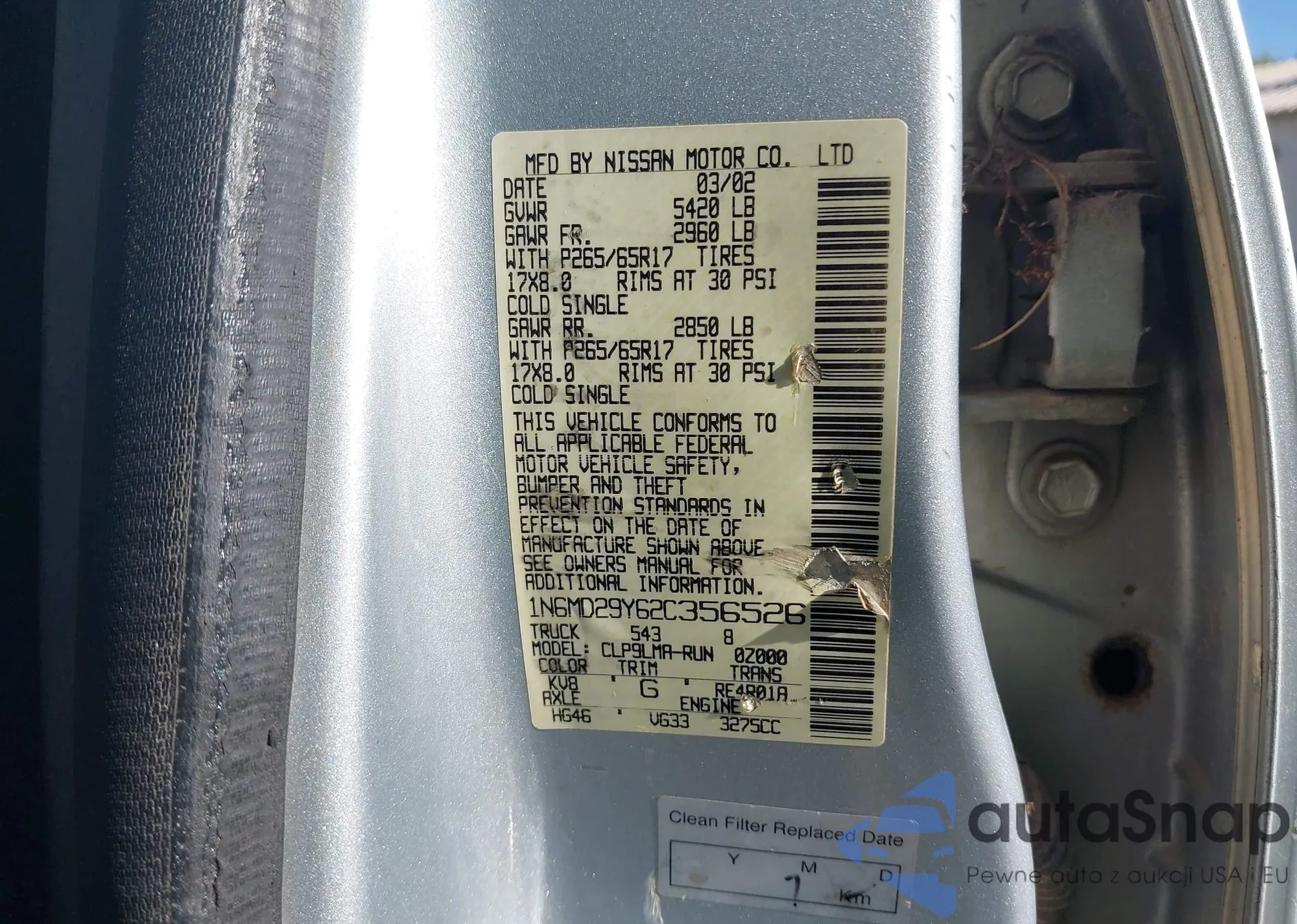• VIN JN1BJ1AWXMW426184