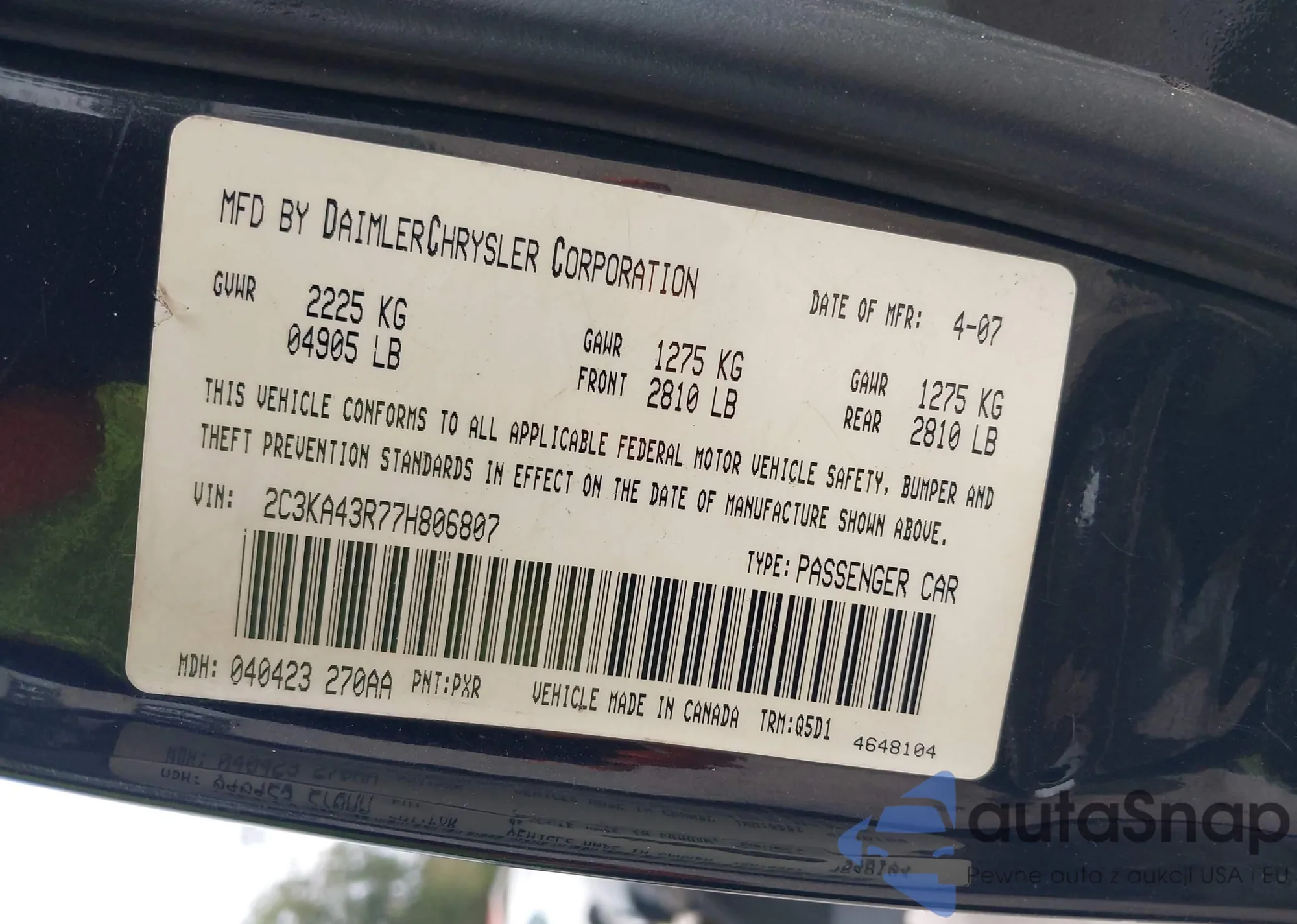 LOT: 43401074 VIN: 3LNHM26T67R651997
