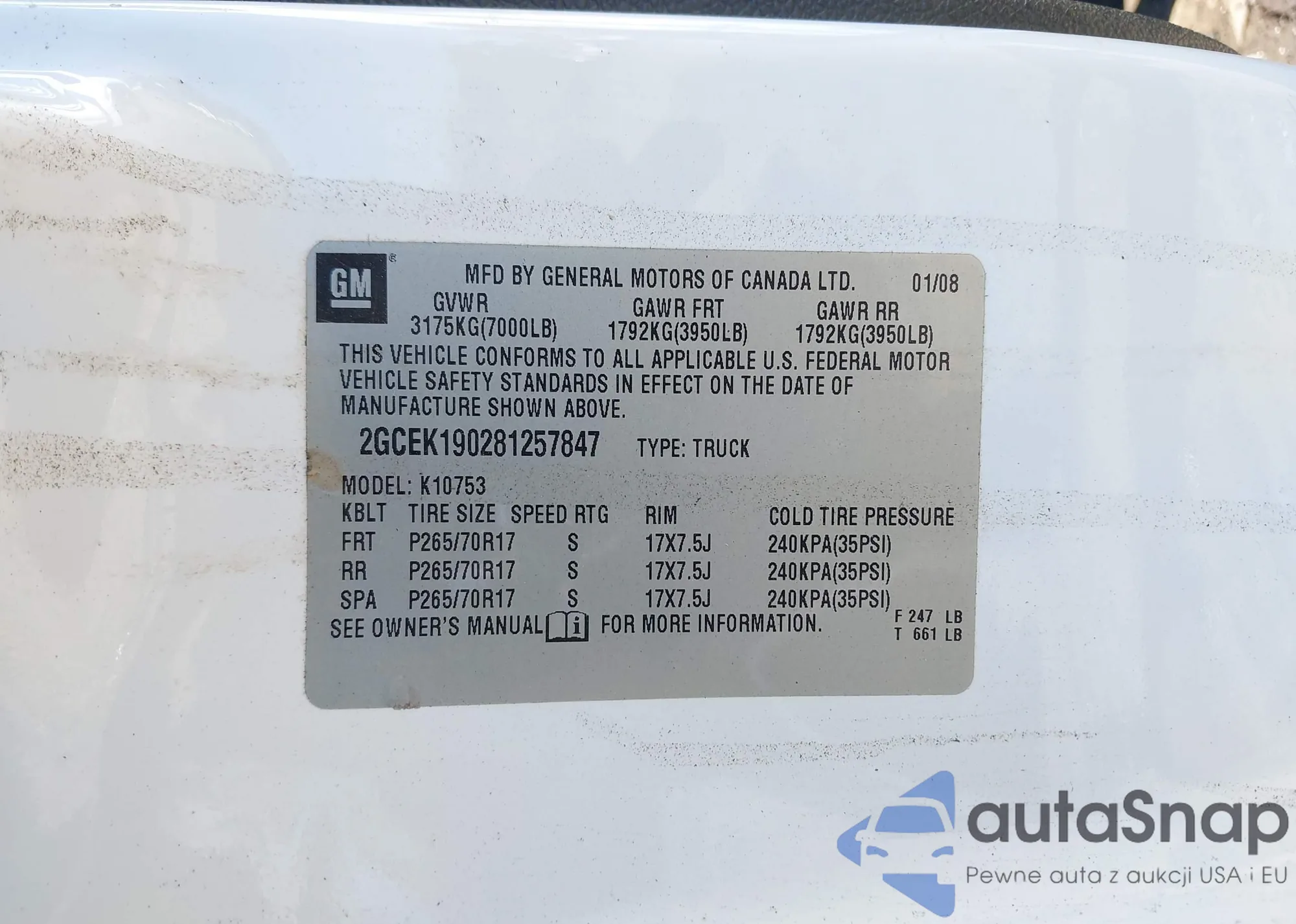 LOT: 43415377 VIN: 2GCEK190281257847