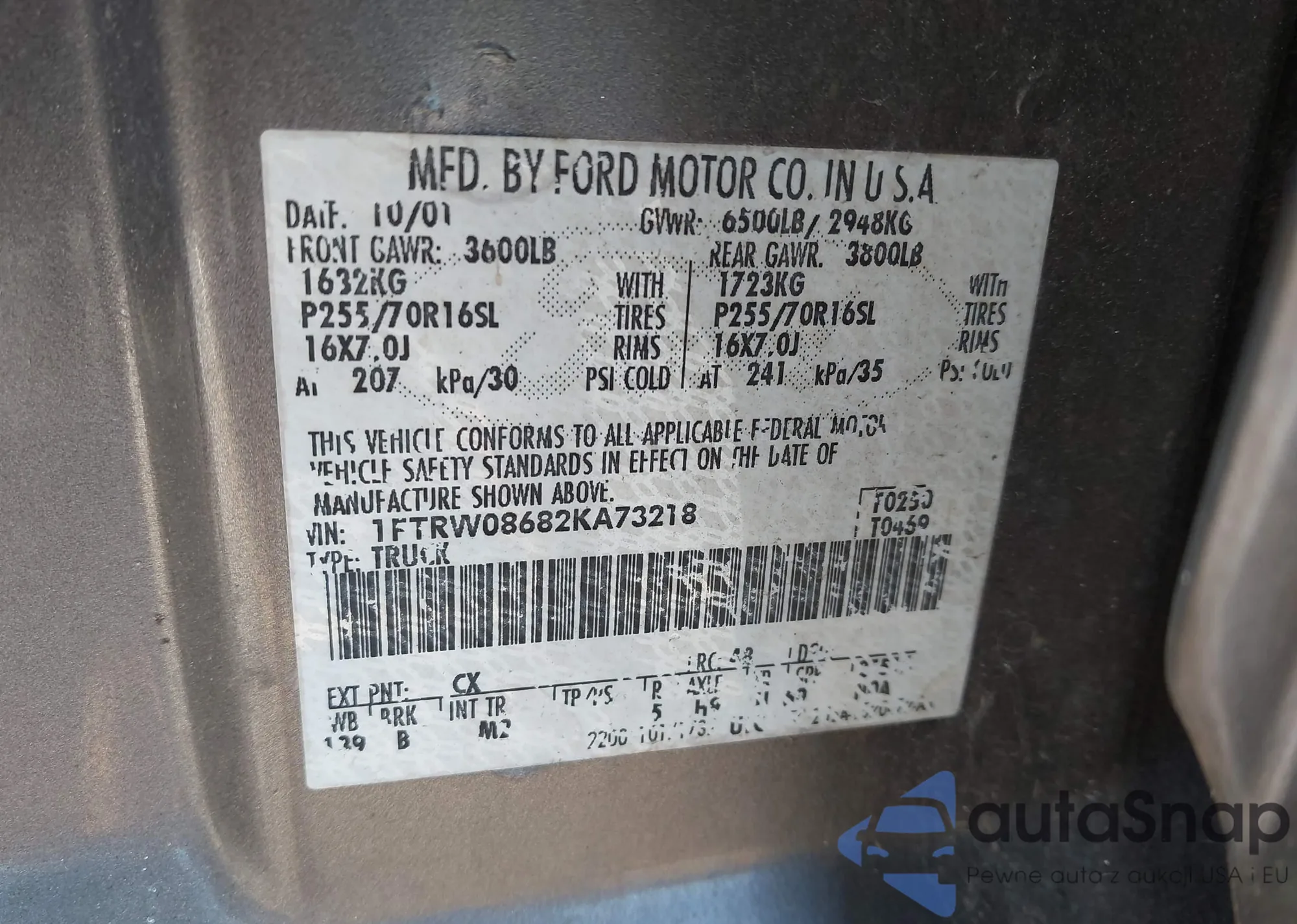 • VIN 1FTRW08682KA73218