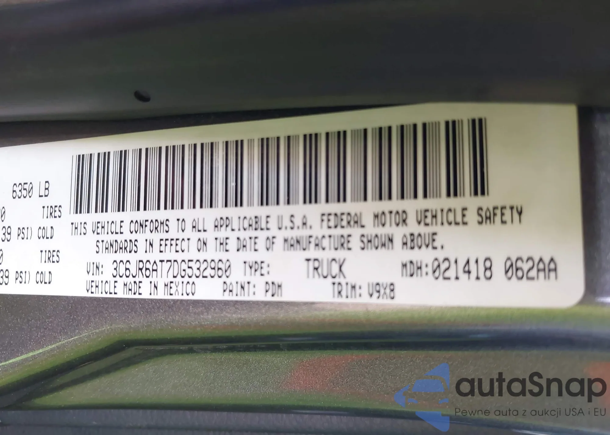 • VIN 5TFUY5F1XAX157325