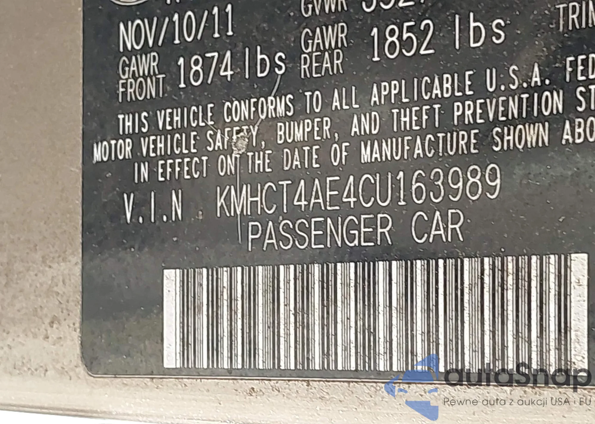 • VIN KMHCT4AE4CU163989