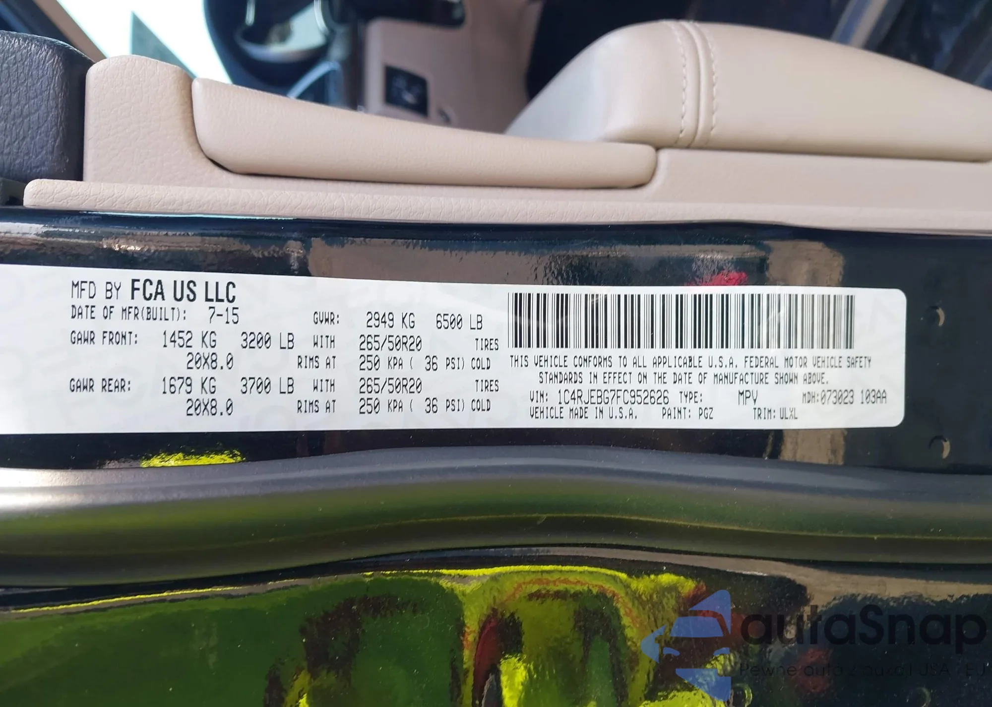 • VIN 1C4RJEBG7FC952626