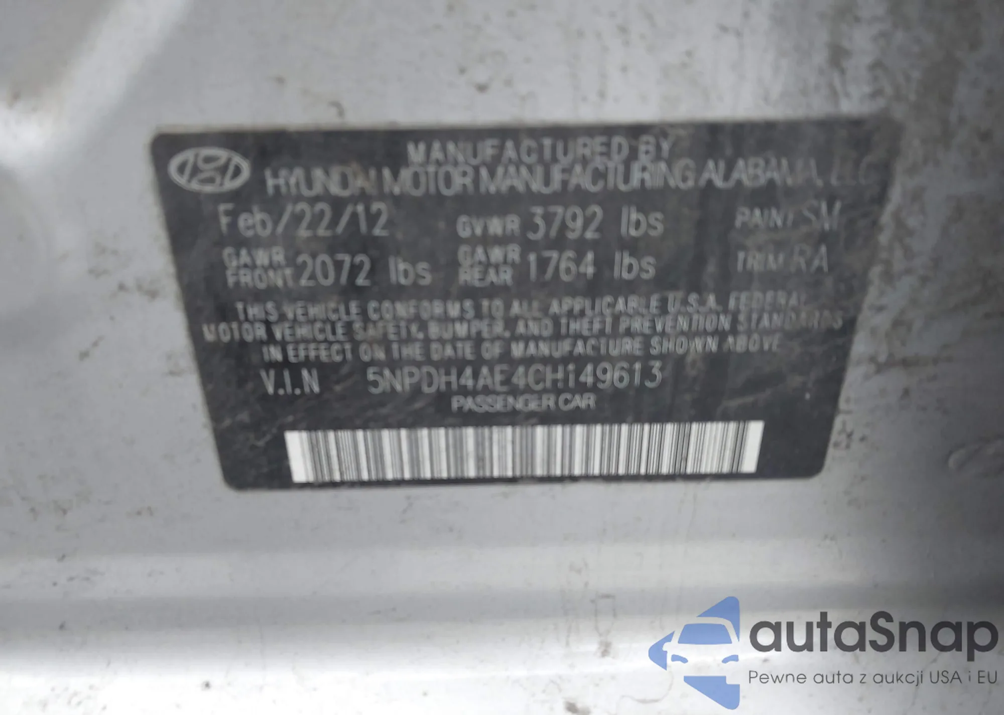 LOT: 43495003 VIN: 5NPDH4AE4CH149613