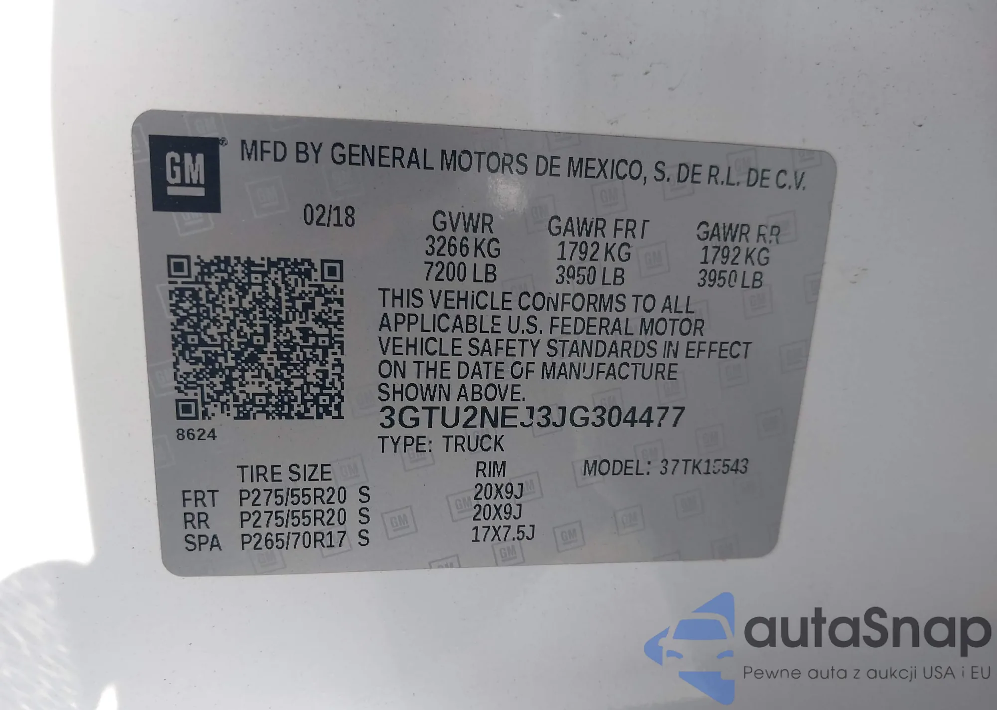 • VIN 3GTU2NEJ3JG304477