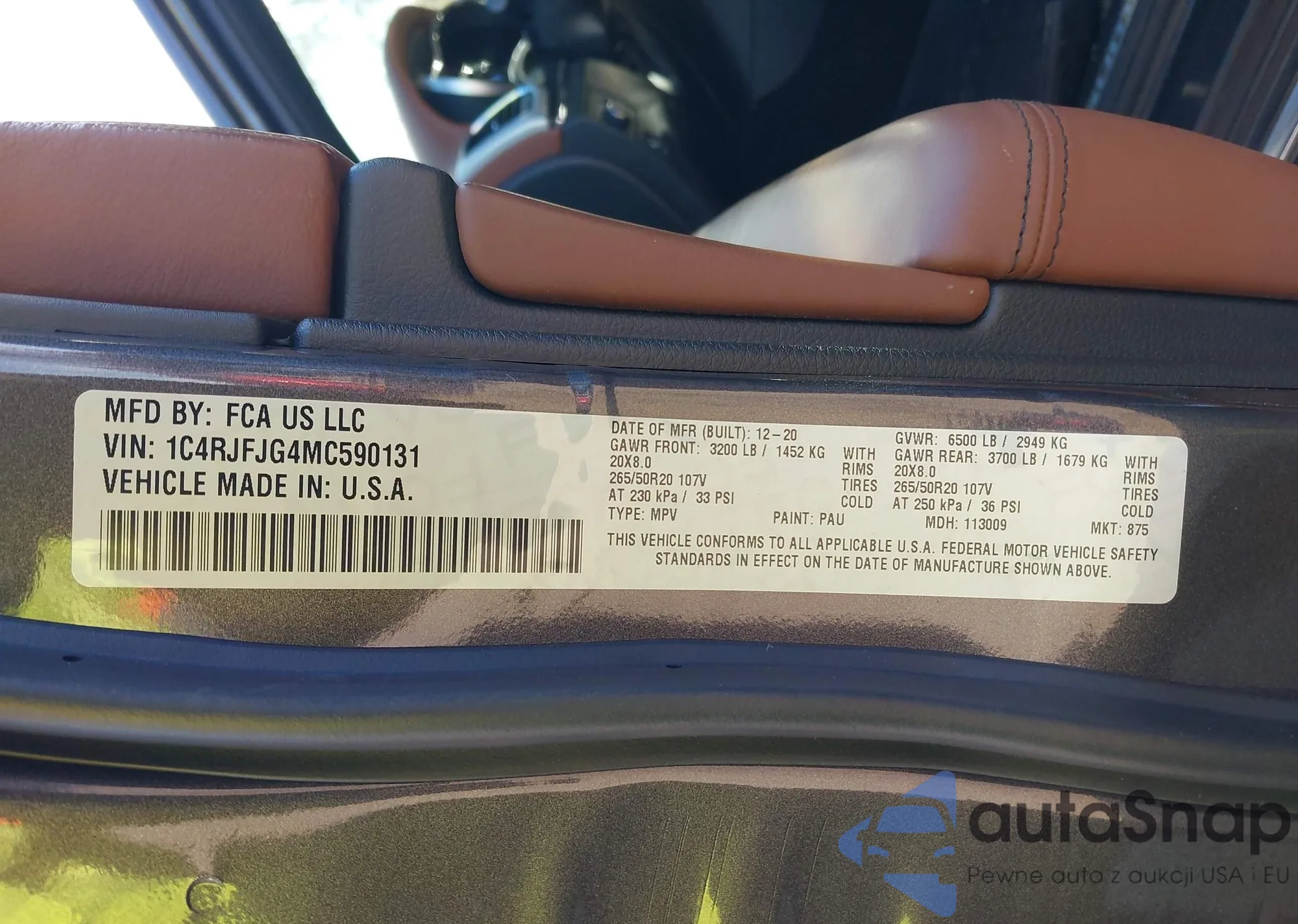 • VIN 1C4RJFJG4MC590131