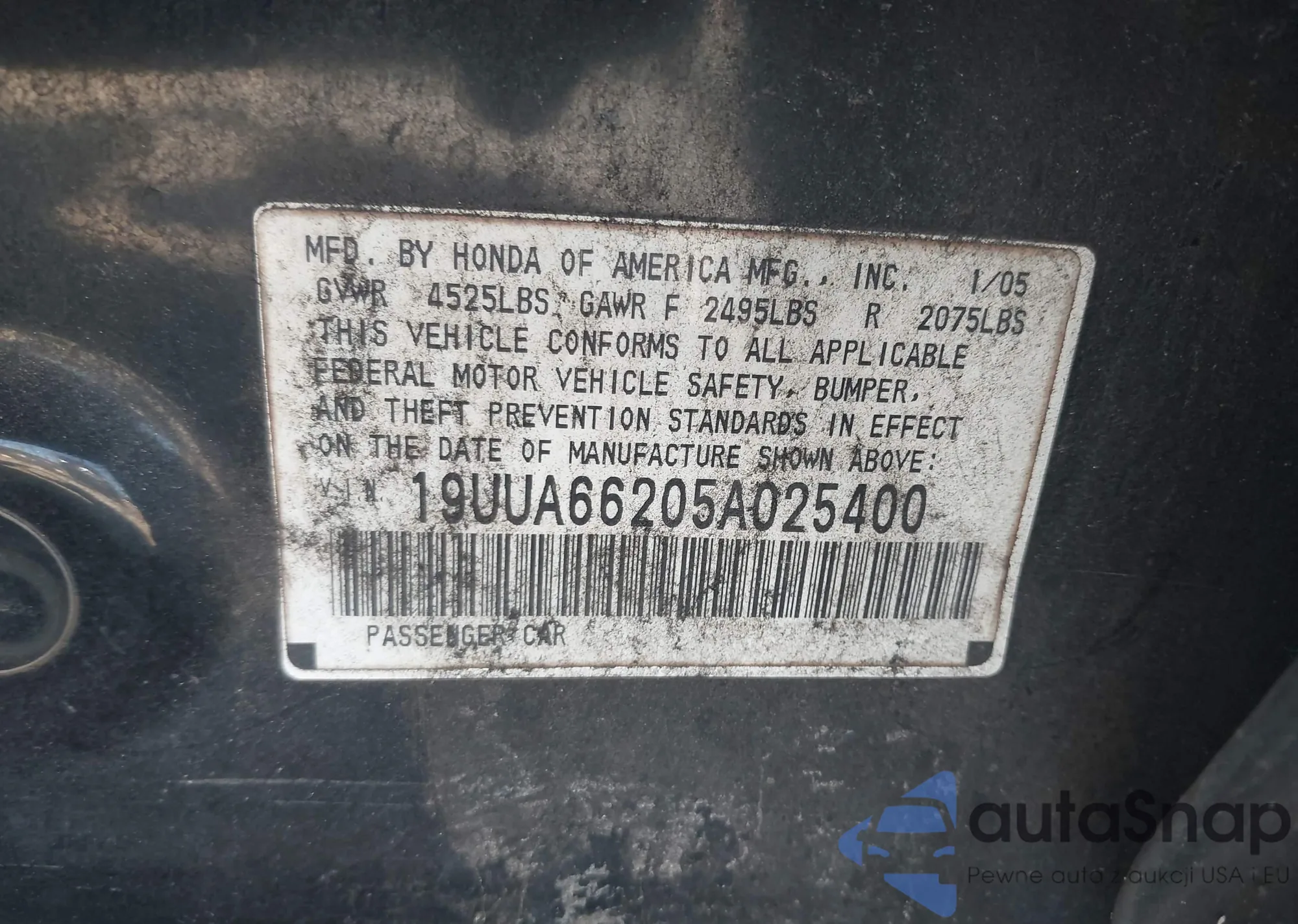 • VIN 19UUA66205A025400