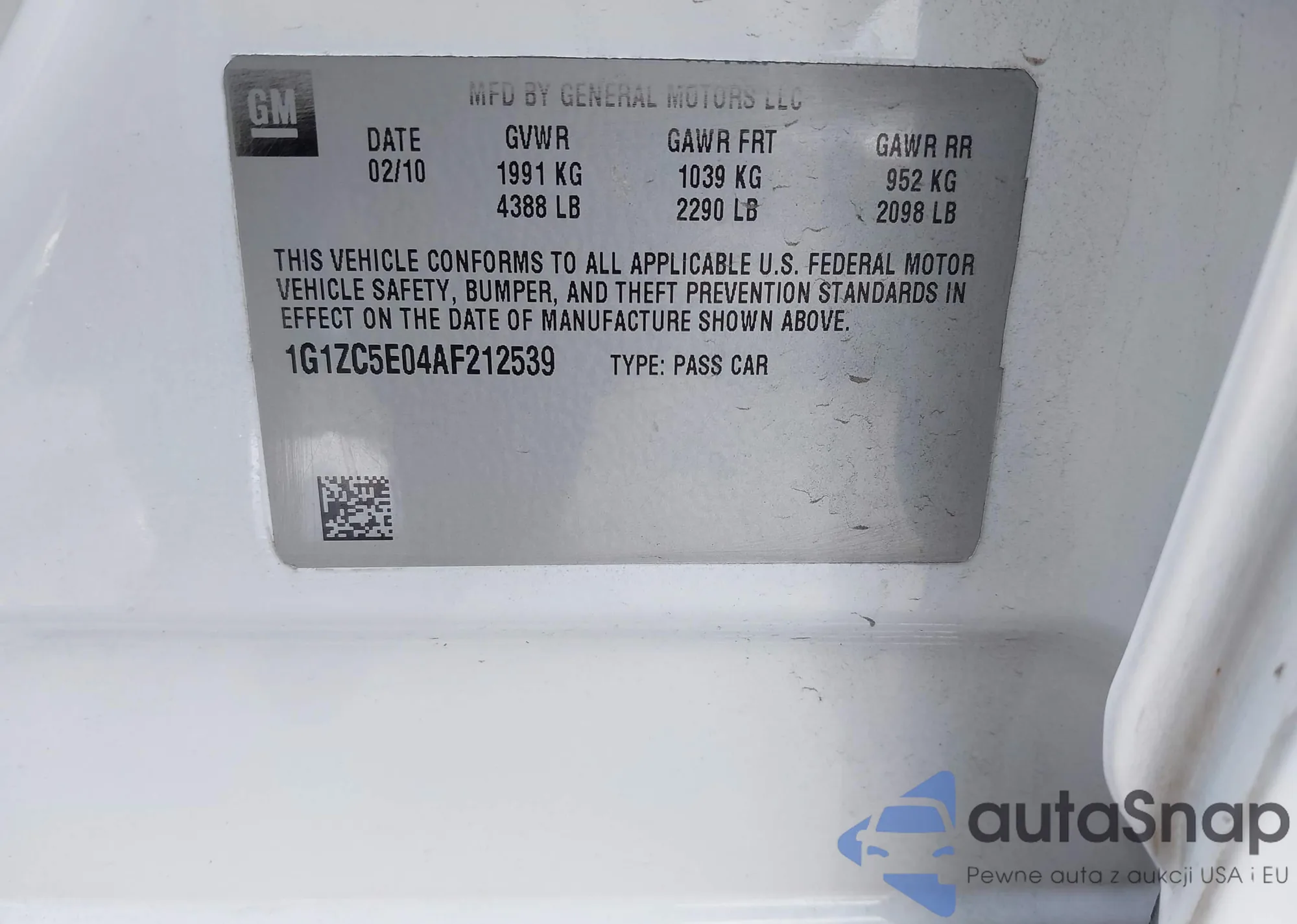 • VIN 1G1ZC5E04AF212539
