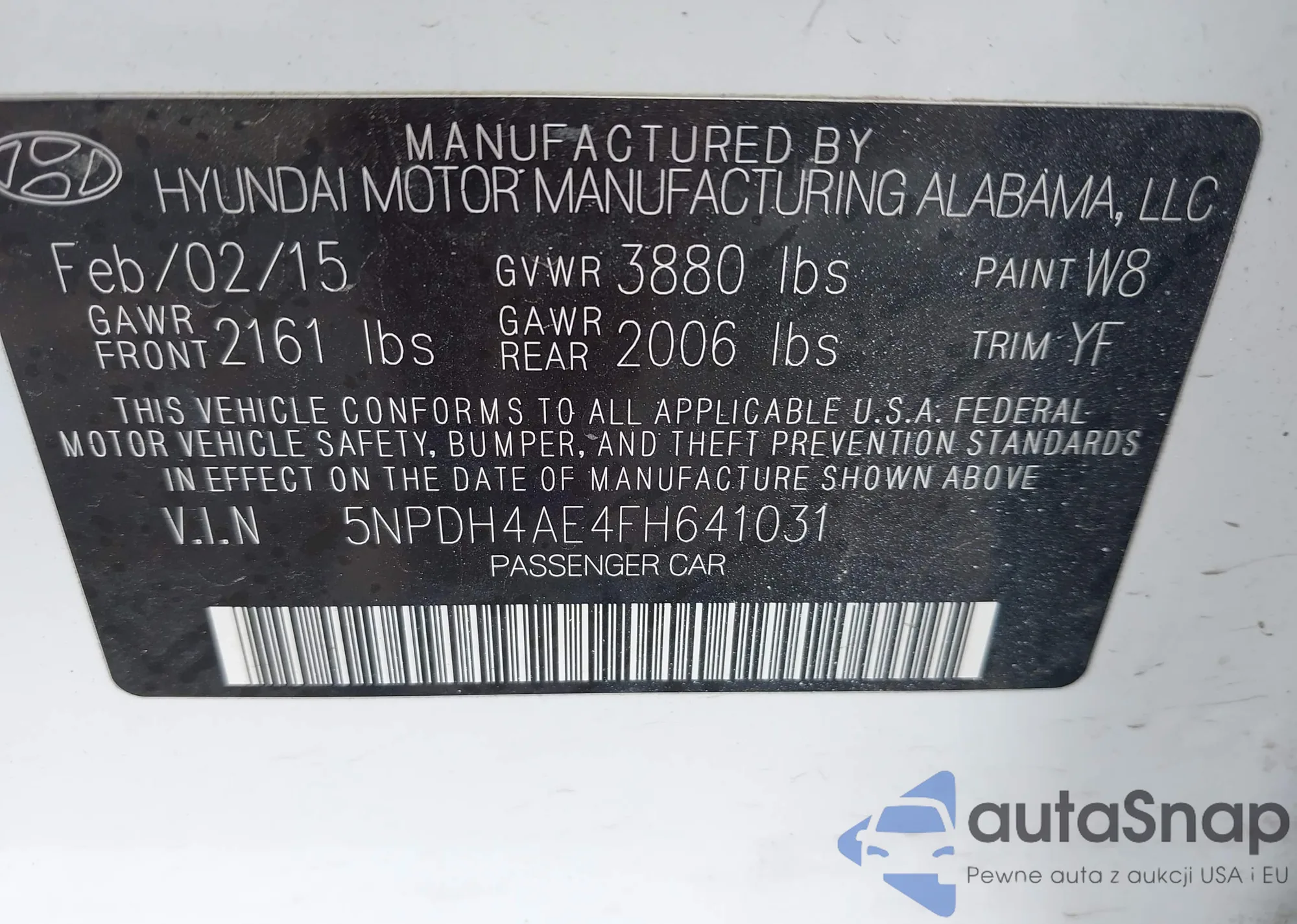 LOT: 42895403 VIN: 5NPDH4AE4FH641031