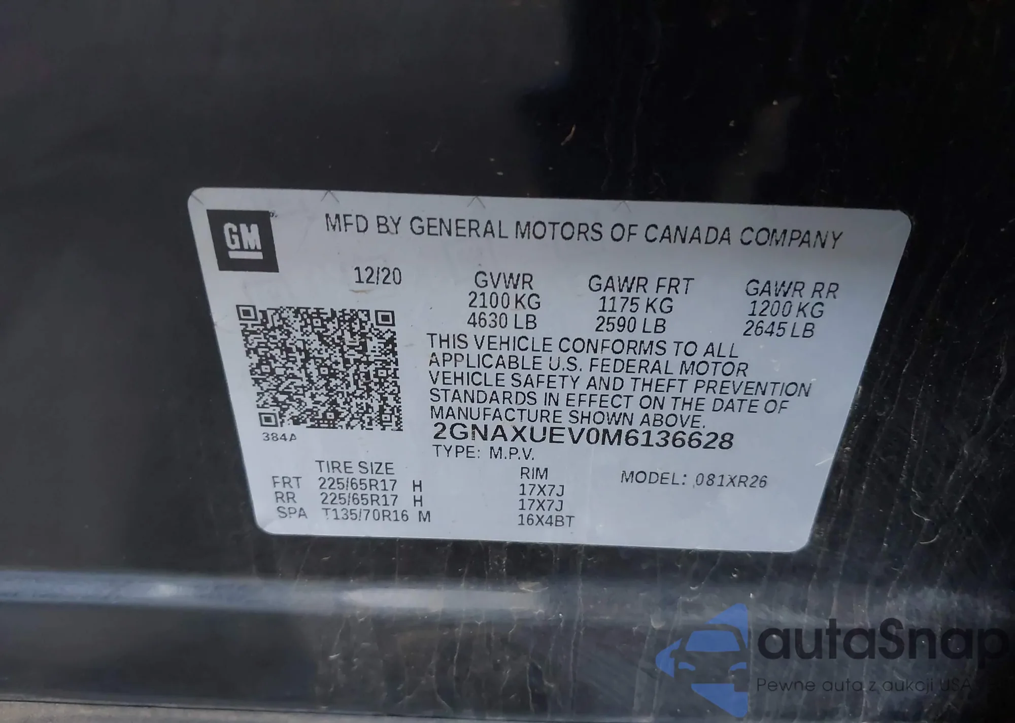 • VIN 2GNAXUEV0M6136628
