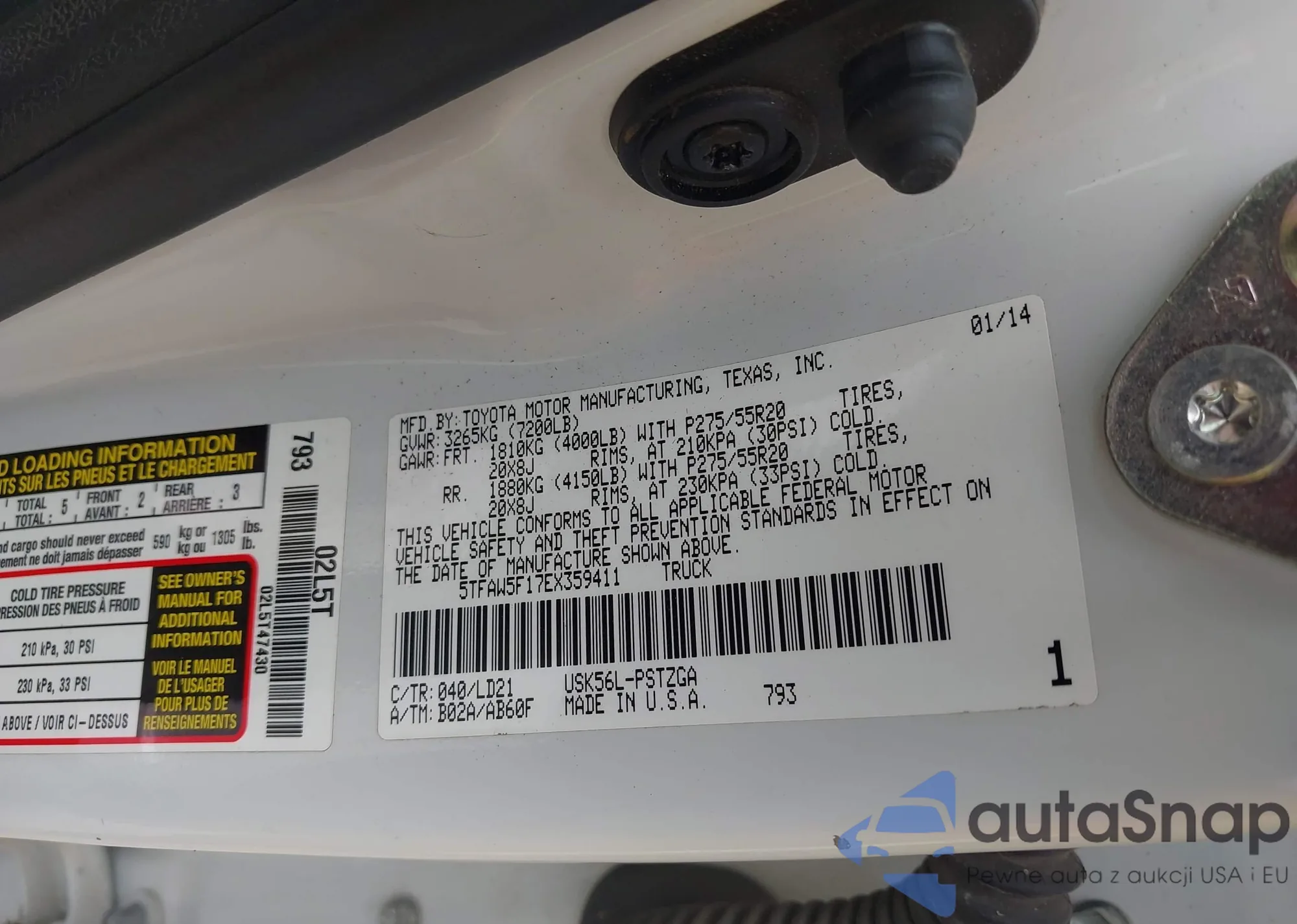 LOT: 43338792 VIN: 5TFAW5F17EX359411