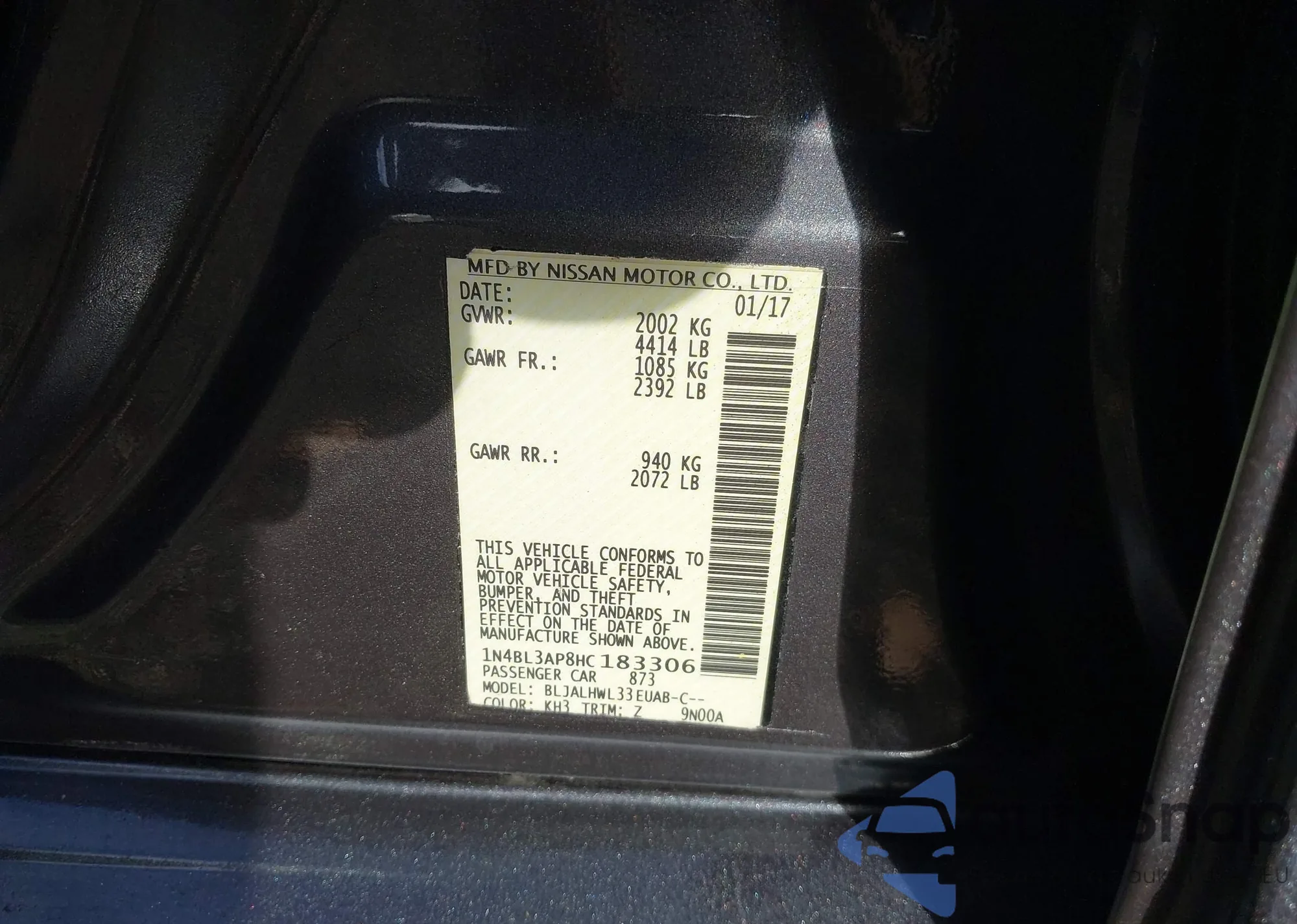 • VIN 5YJYGDEF8MF209383