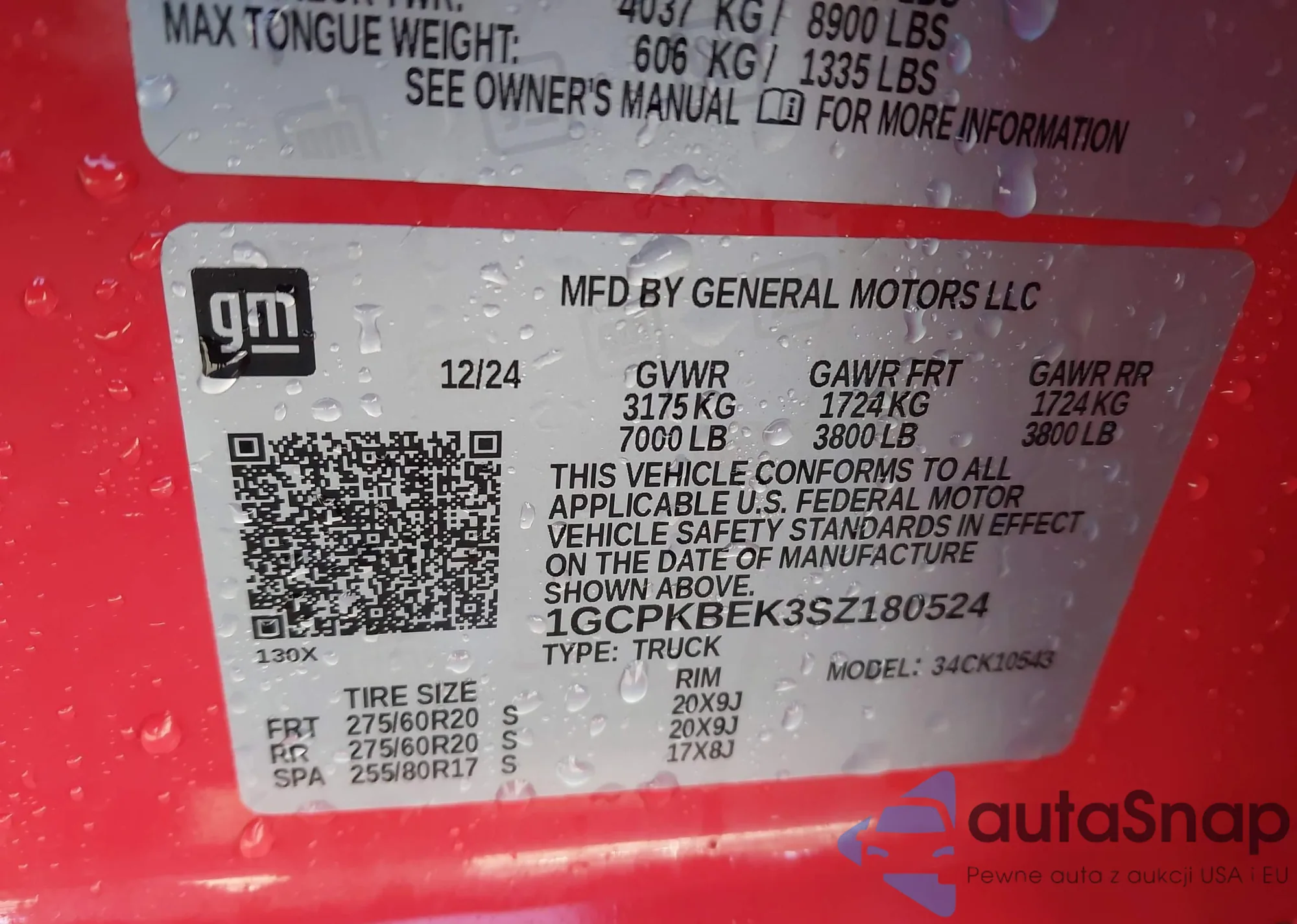 • VIN 1GCPKBEK3SZ180524