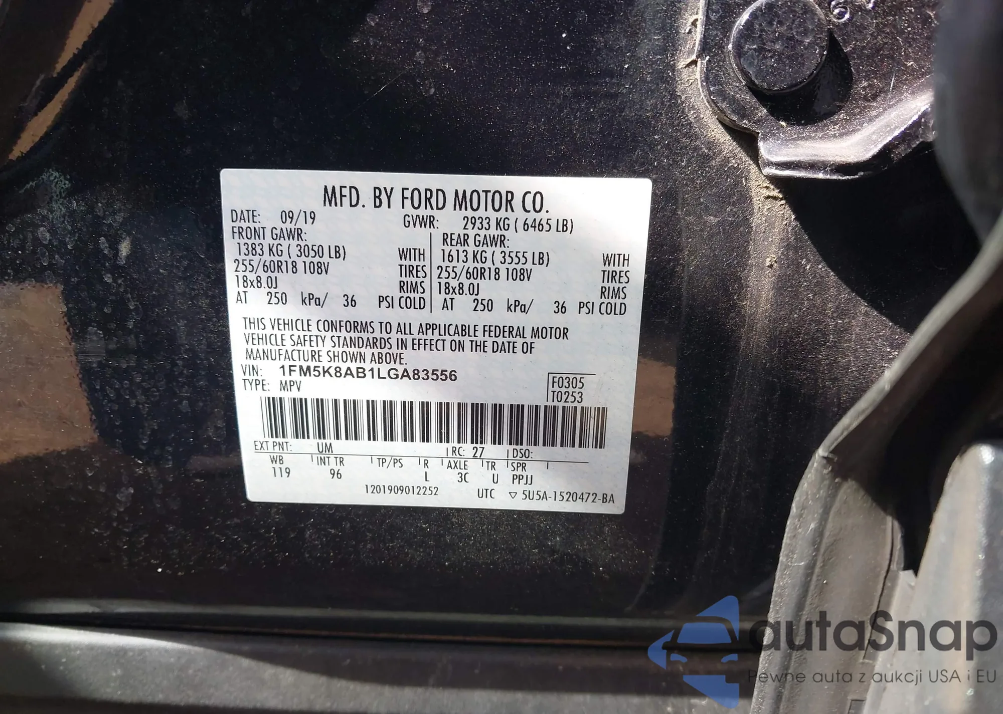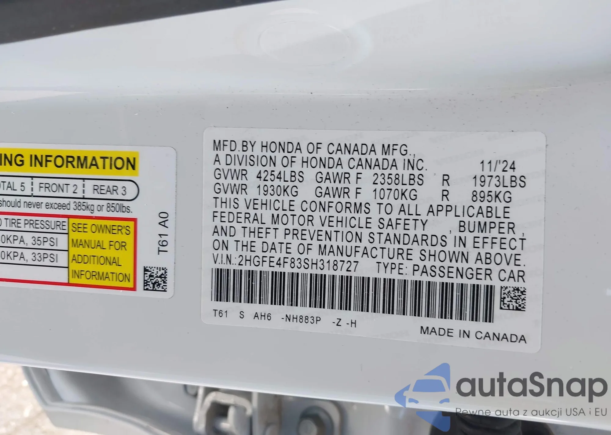 LOT: 43306268 VIN: 2HGFE4F83SH318727