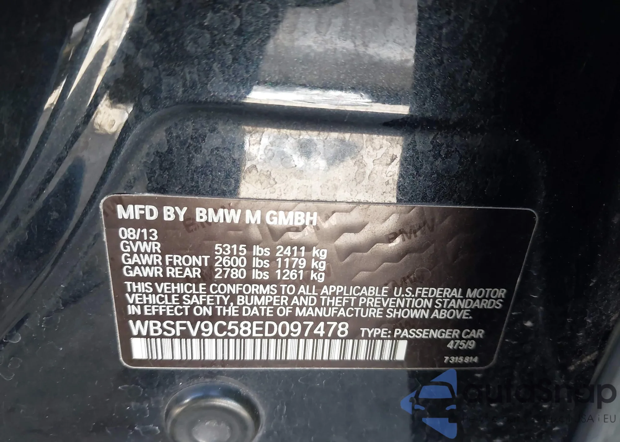 • VIN WBSFV9C58ED097478