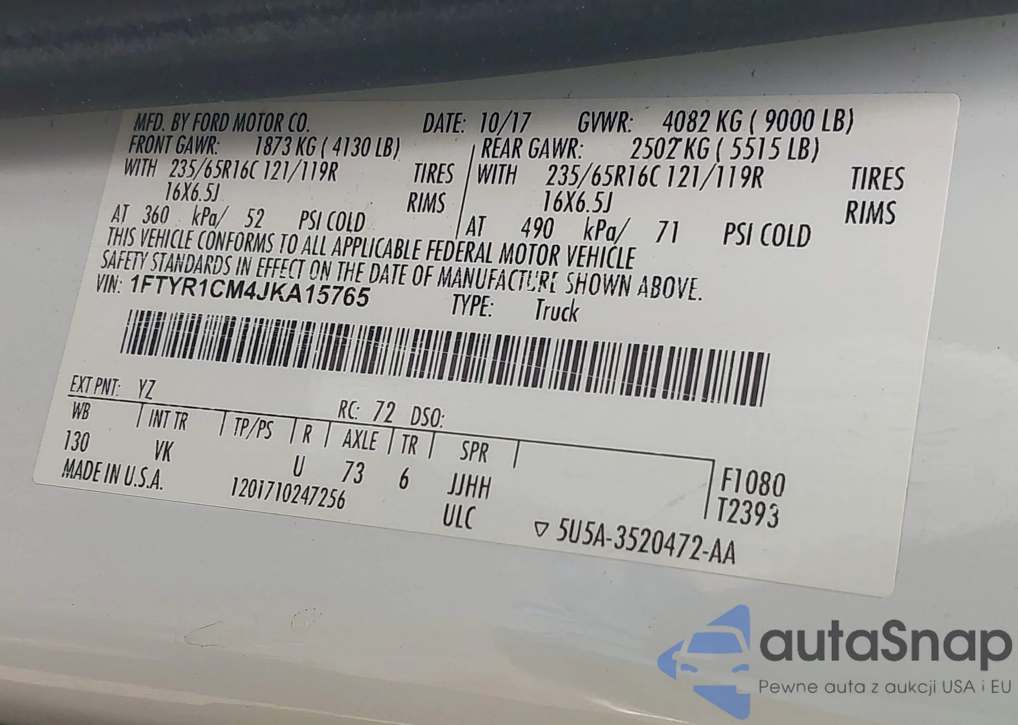 • VIN 1FTFW1ET8CFB09955