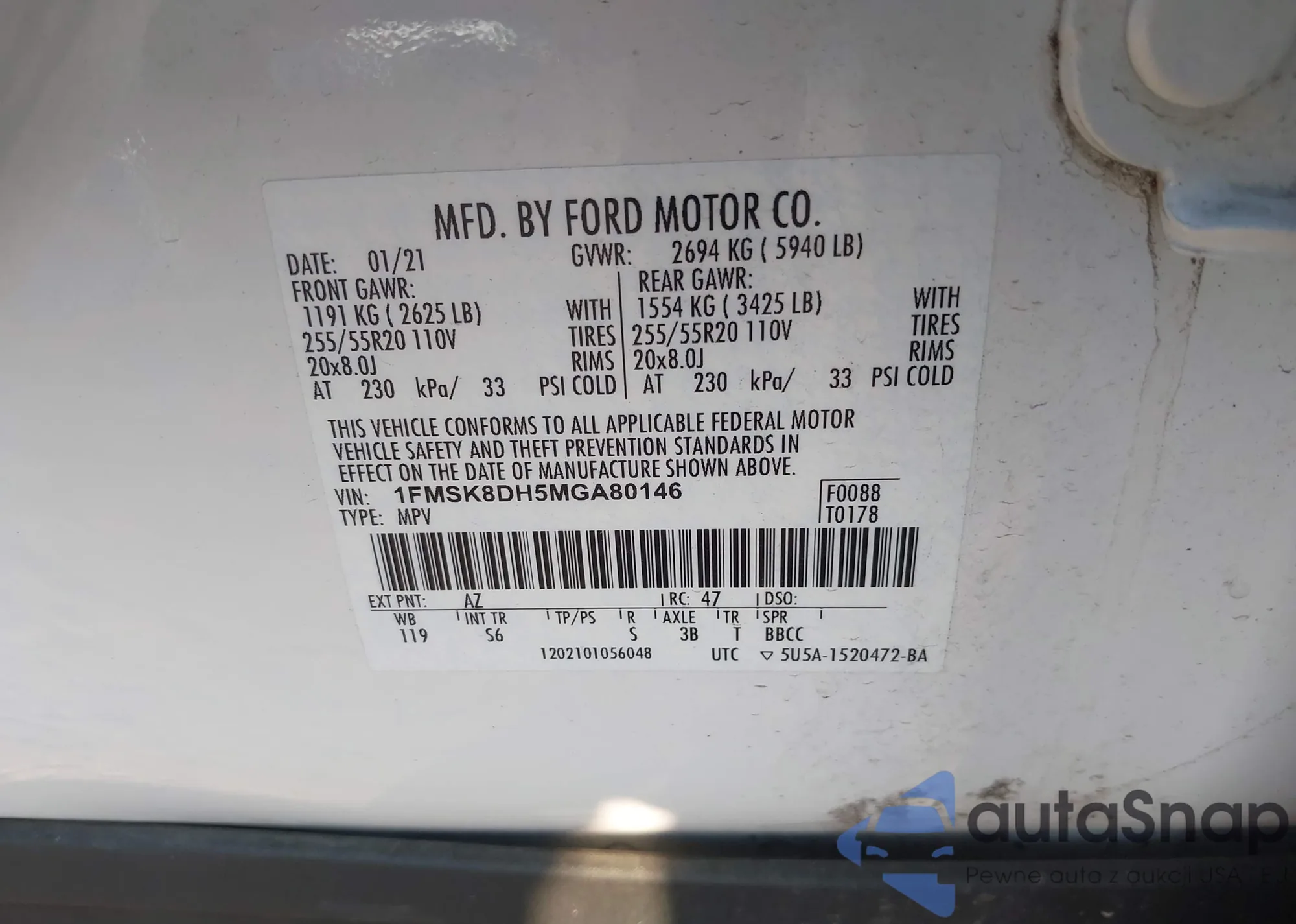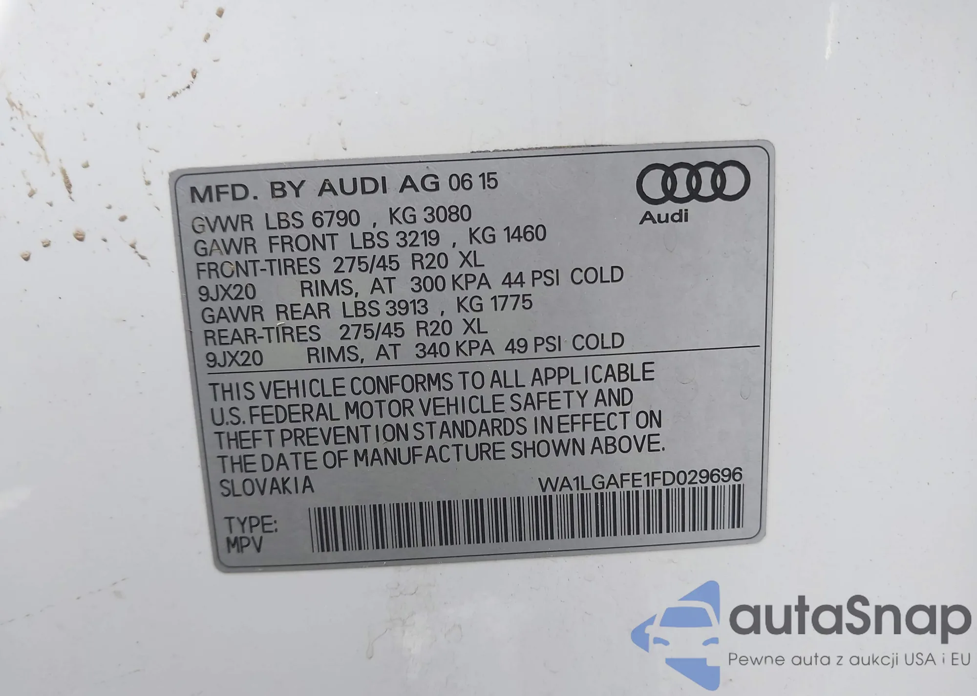 LOT: 43483737 VIN: WA1LGAFE1FD029696