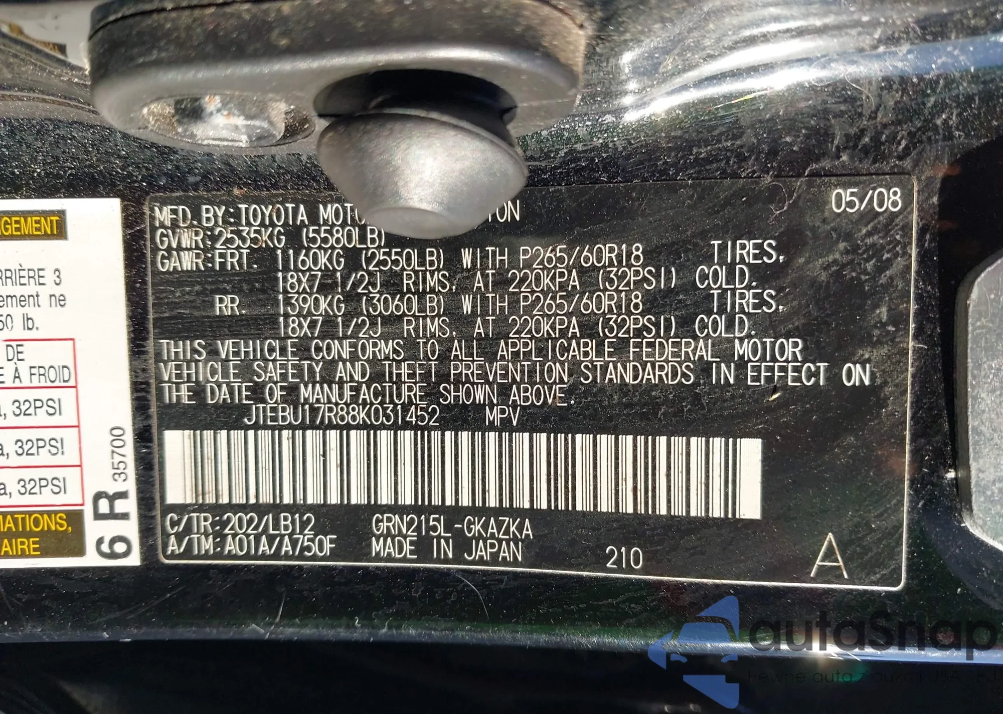 • VIN JTEBU17R88K031452