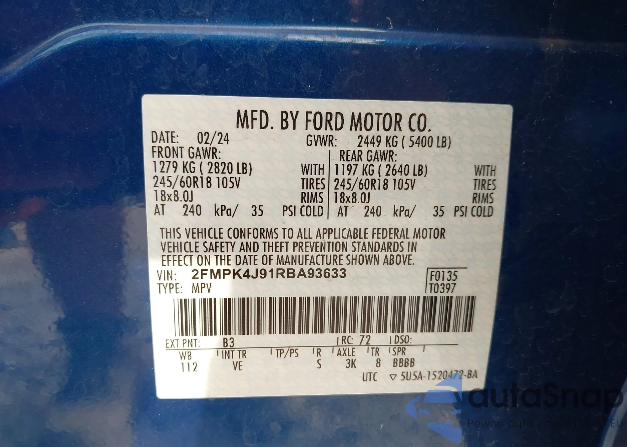 • VIN 2FMPK4J91RBA93633