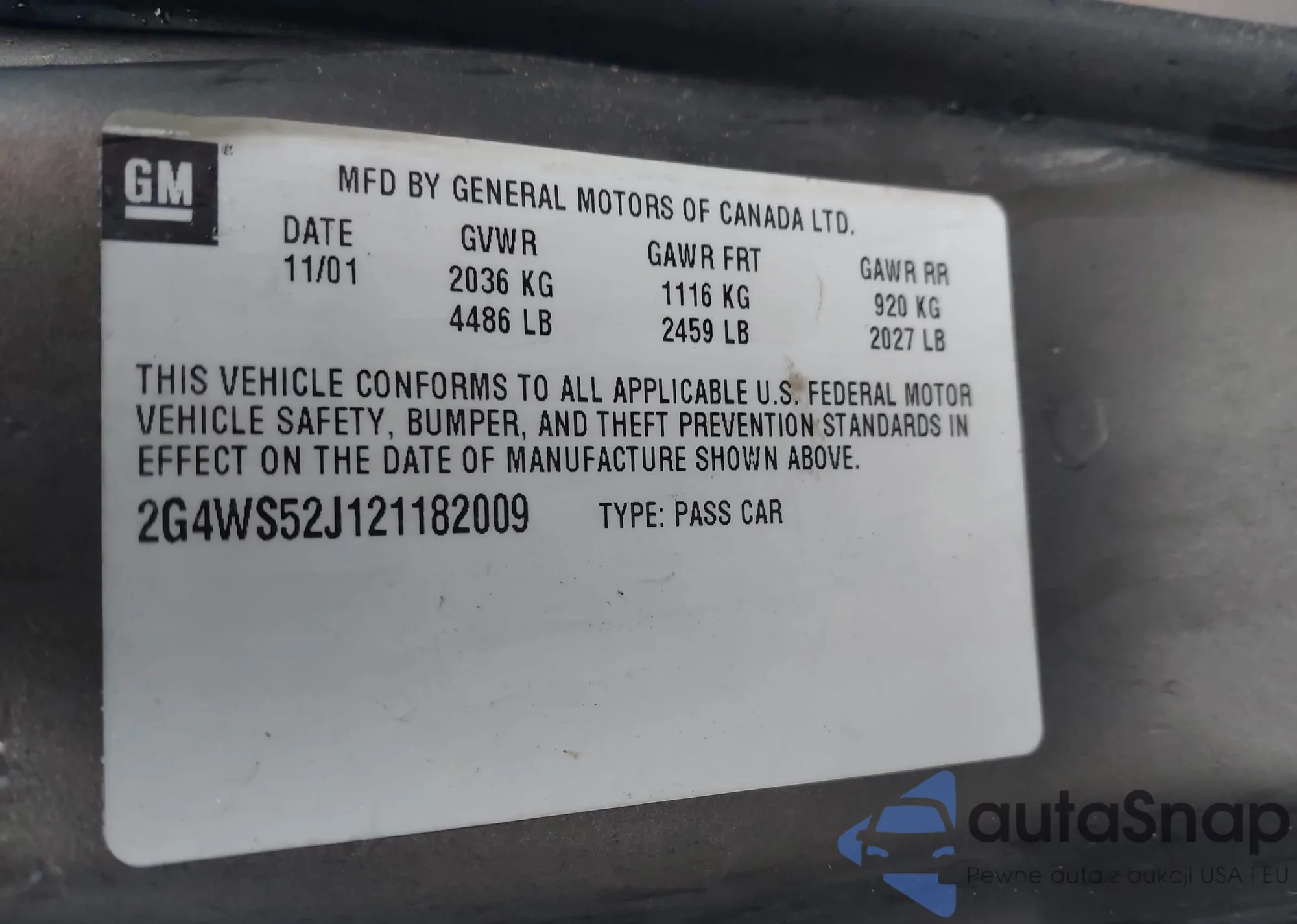 LOT: 43515166 VIN: 2G4WS52J121182009