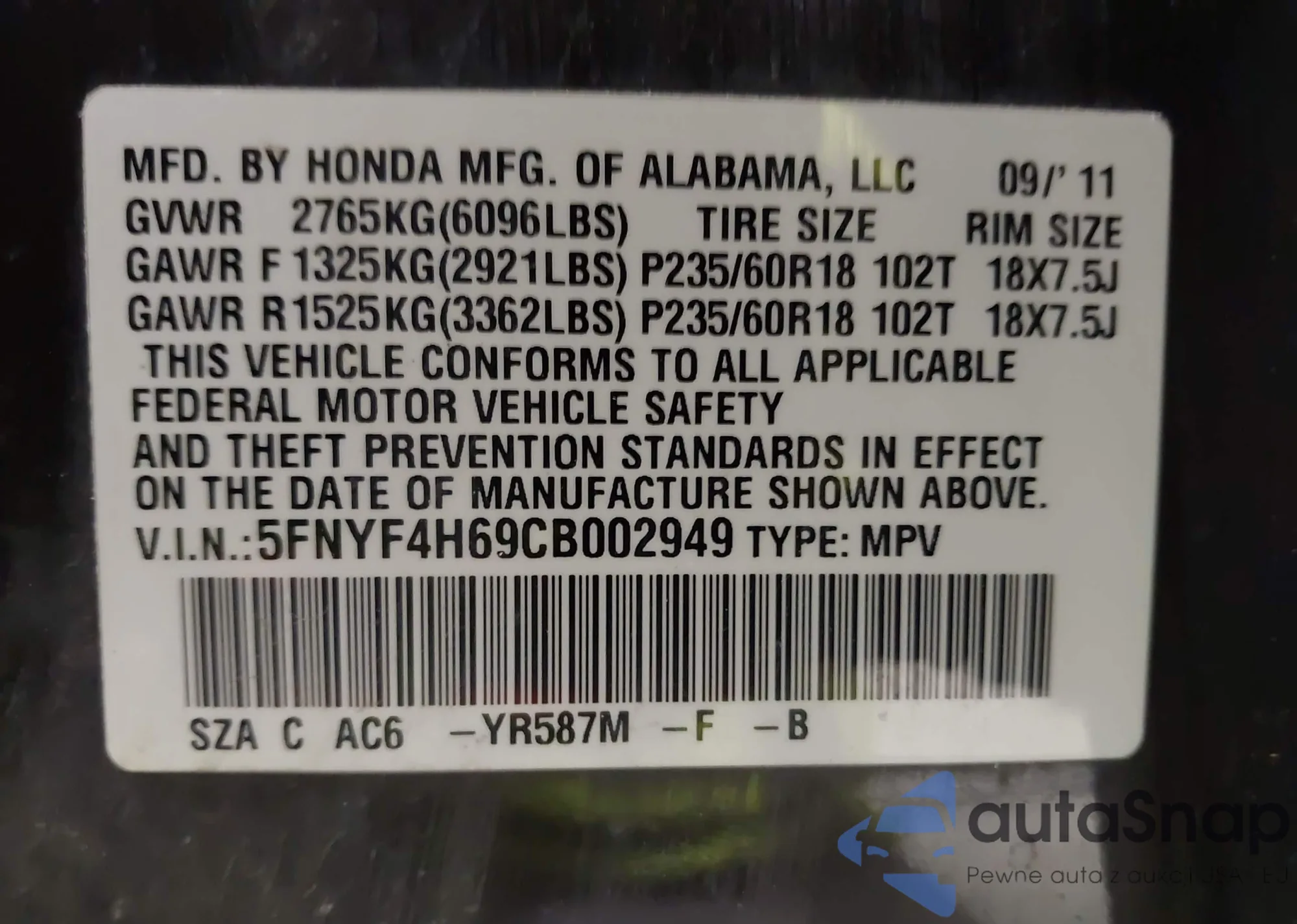 • VIN WP1AA2A51LLB05025