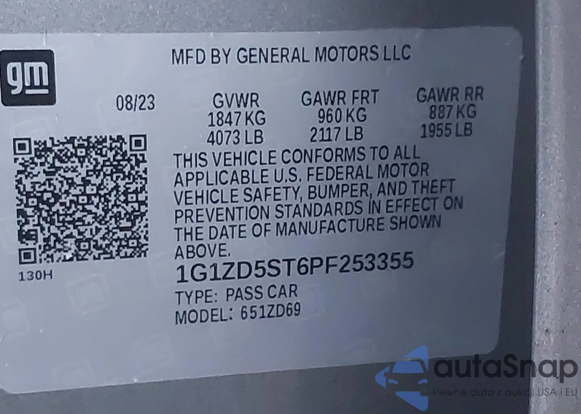 • VIN 1GYFZDR47KF138335