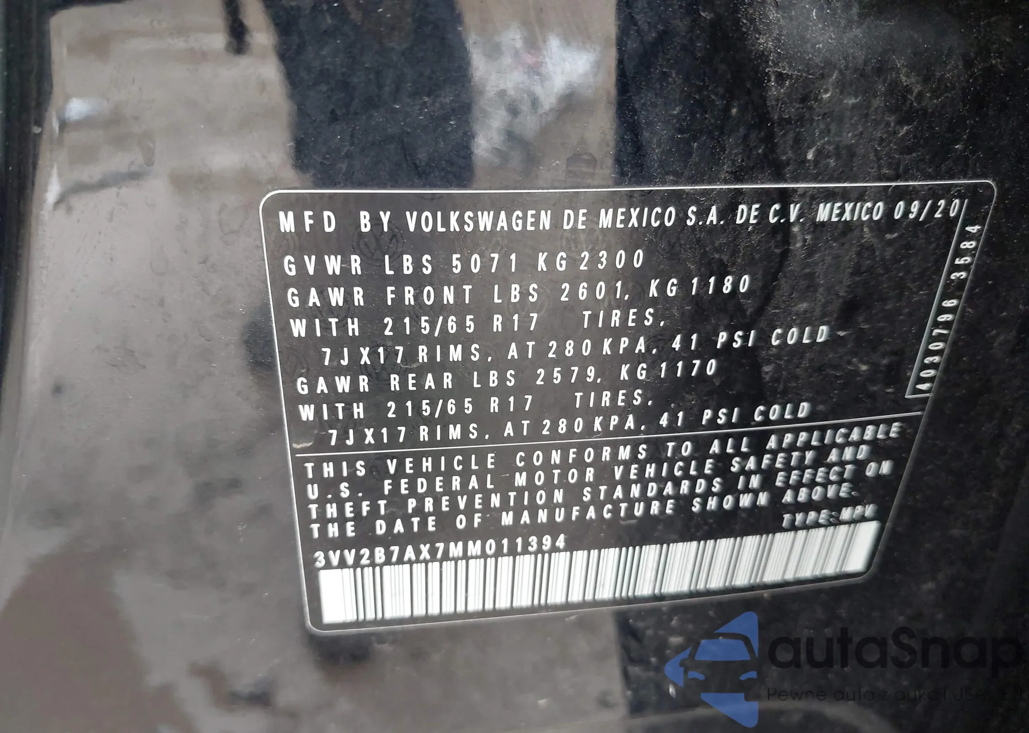 • VIN 2HKRW6H31KH213035